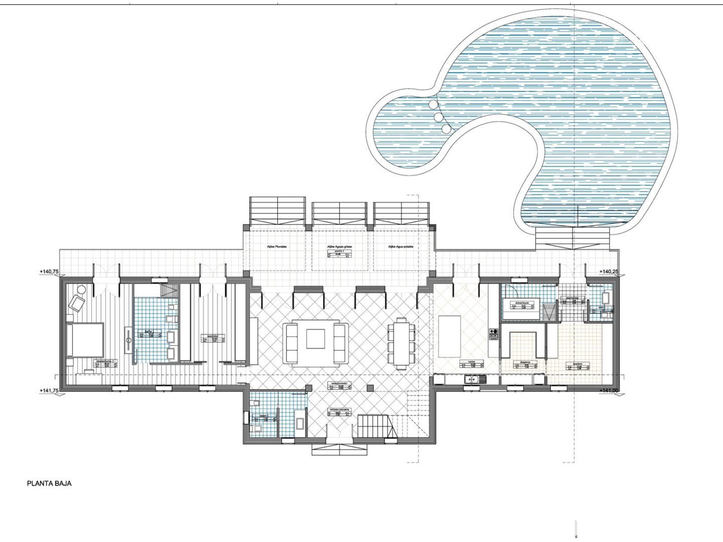 Im rechten Flügel befindet sich der Spa-Bereich mit direktem Zugang zum Pool, wie in den virtuellen Animationen zu sehen ist.