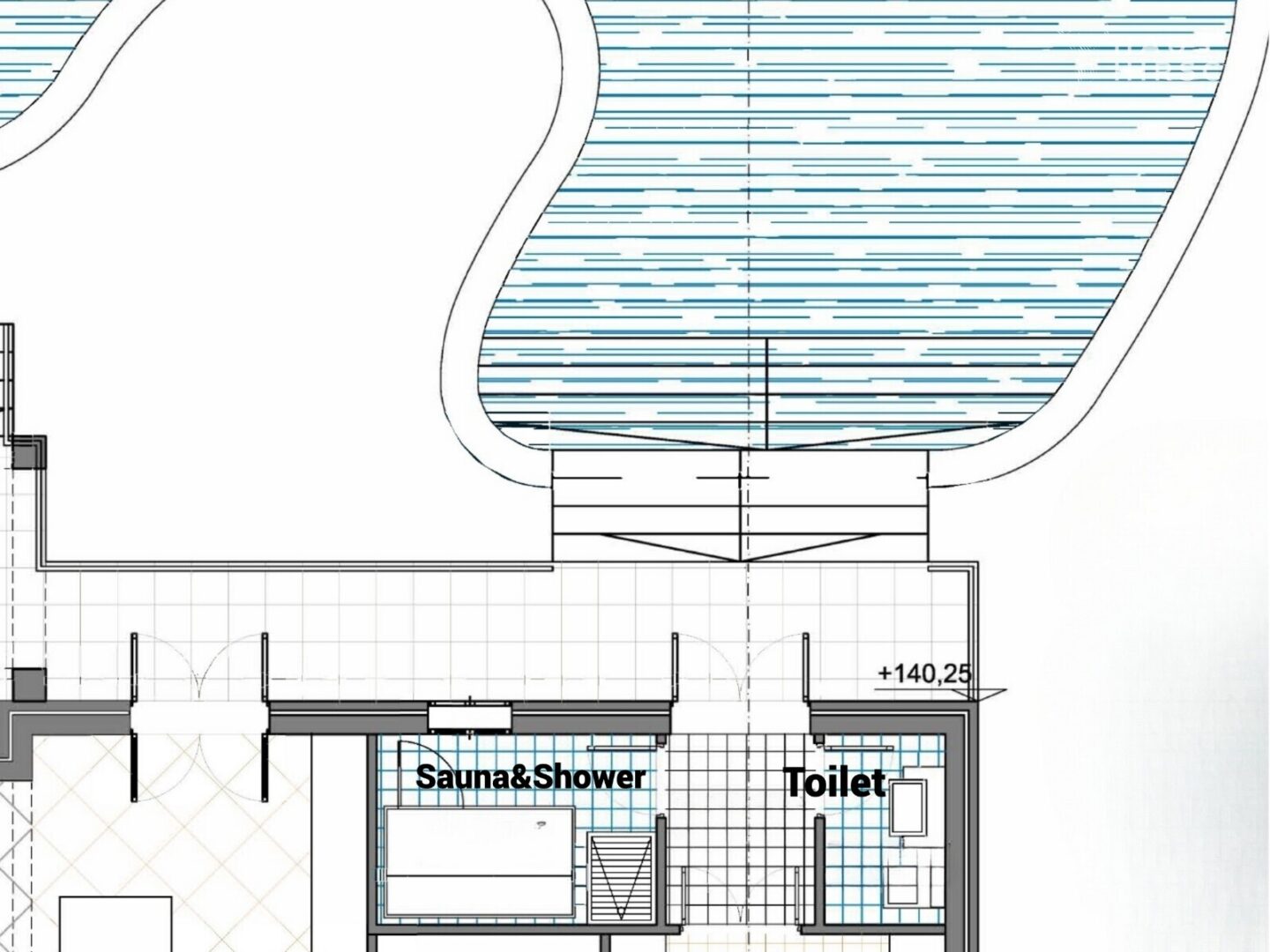 Im rechten Flügel befindet sich der Spa-Bereich mit direktem Zugang zum Pool, wie in den virtuellen Animationen zu sehen ist.