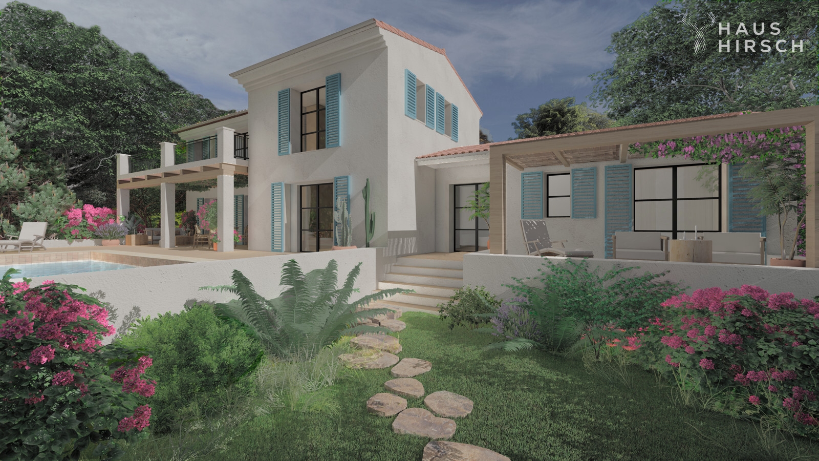 Ein Highlight ist der Pool mit großer Terrasse und gemütlicher Pergola – ideal für entspannte Stunden oder gesellige Abende im Freien.