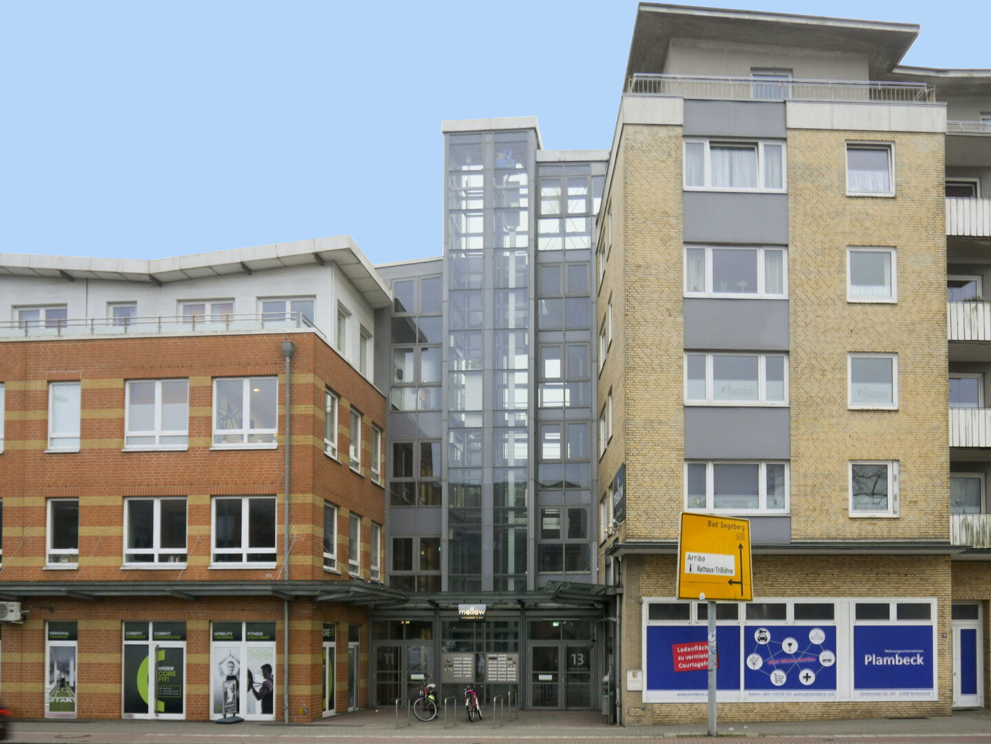 Das repräsentative Büro- und Geschäftshaus mit Personenaufzug und Tiefgarage in der Ohechaussee 13-17 beherbergt neben Ärzten und Anwälten, eine Physiotherapie und weitere Gewerbe.