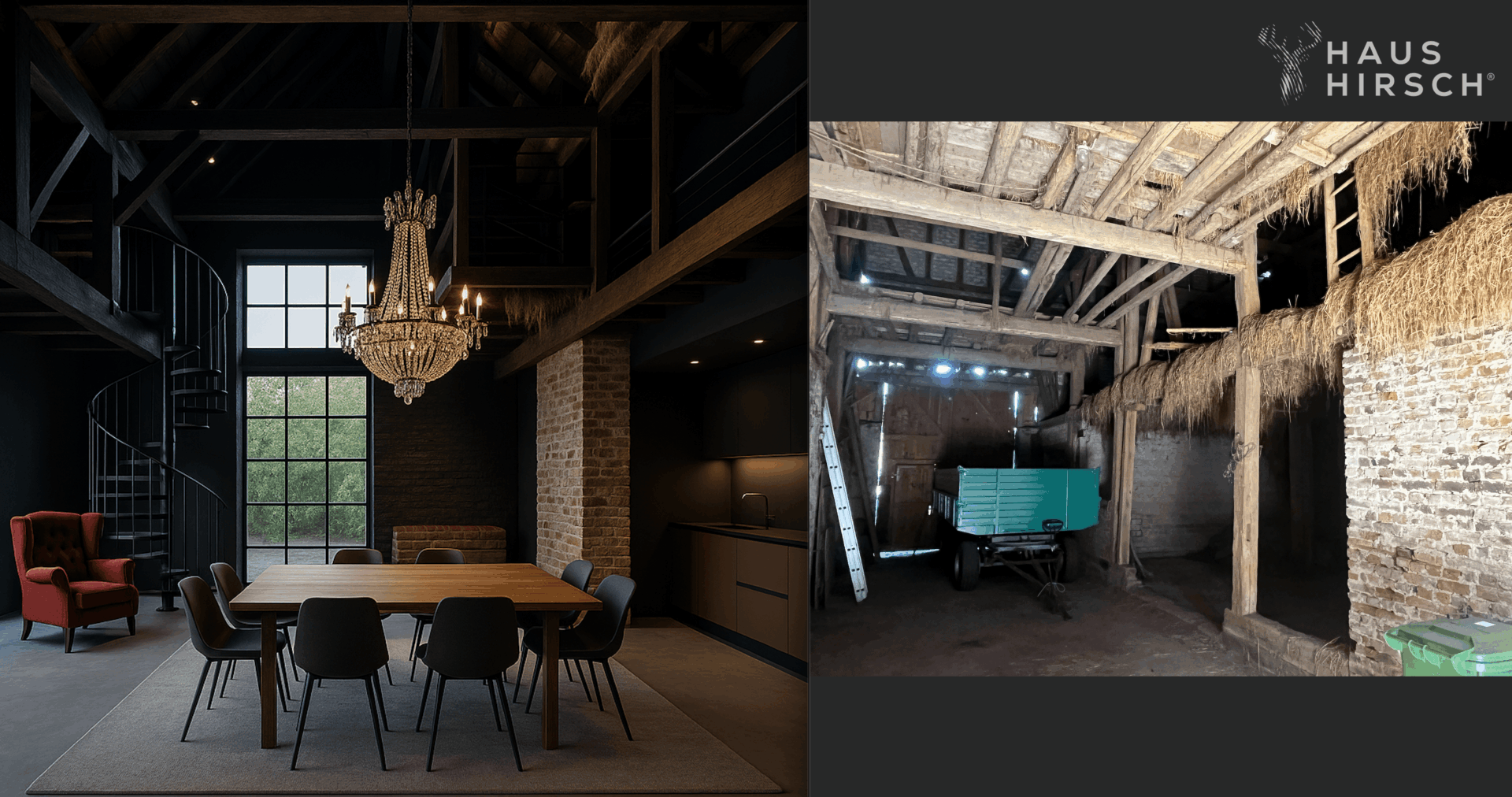 Der großzügige Grundriss dieser Hofreite ermöglicht zahlreiche Umgestaltungs- und Nutzungsmöglichkeiten. Die weitläufige Scheune könnte in attraktive Wohnungen umgebaut werden, die modernen Wohnkomfort bieten und gleichzeitig den Charme der alten Architektur bewahren. Auch eine Umnutzung der Stallungen für Pferdehaltung oder ein Reiterhof mit entsprechenden Reitplätzen, Offenställen und Weideflächen ist vorstellbar. Für Liebhaber von Tieren und Natur ist ein solches Anwesen geradezu ein Paradies, das sowohl Platz für Tiere als auch für Menschen bietet.