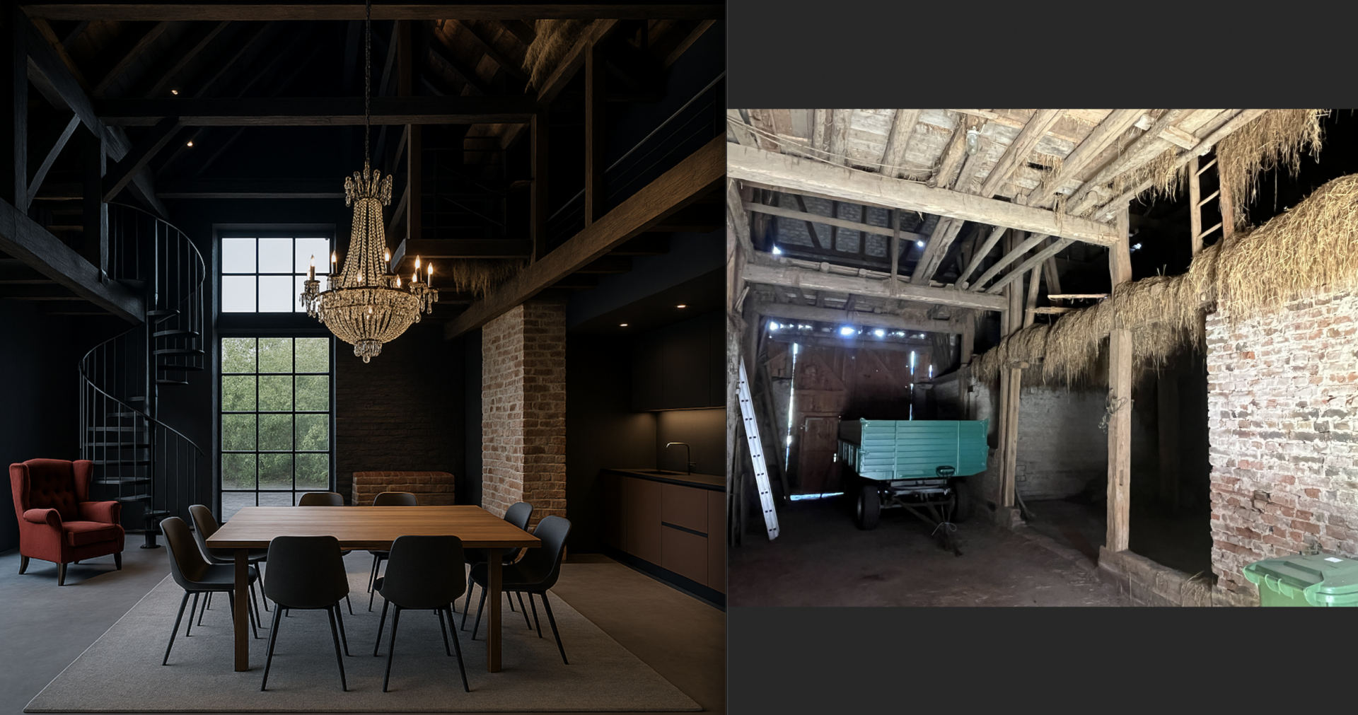 Sie können 10 Wohnungen dazu bauen / ausbauen, die Scheune und die angrenzenden Gebäude sind SO groß, dass Sie freien, großen, individuellen Freiraum haben ...