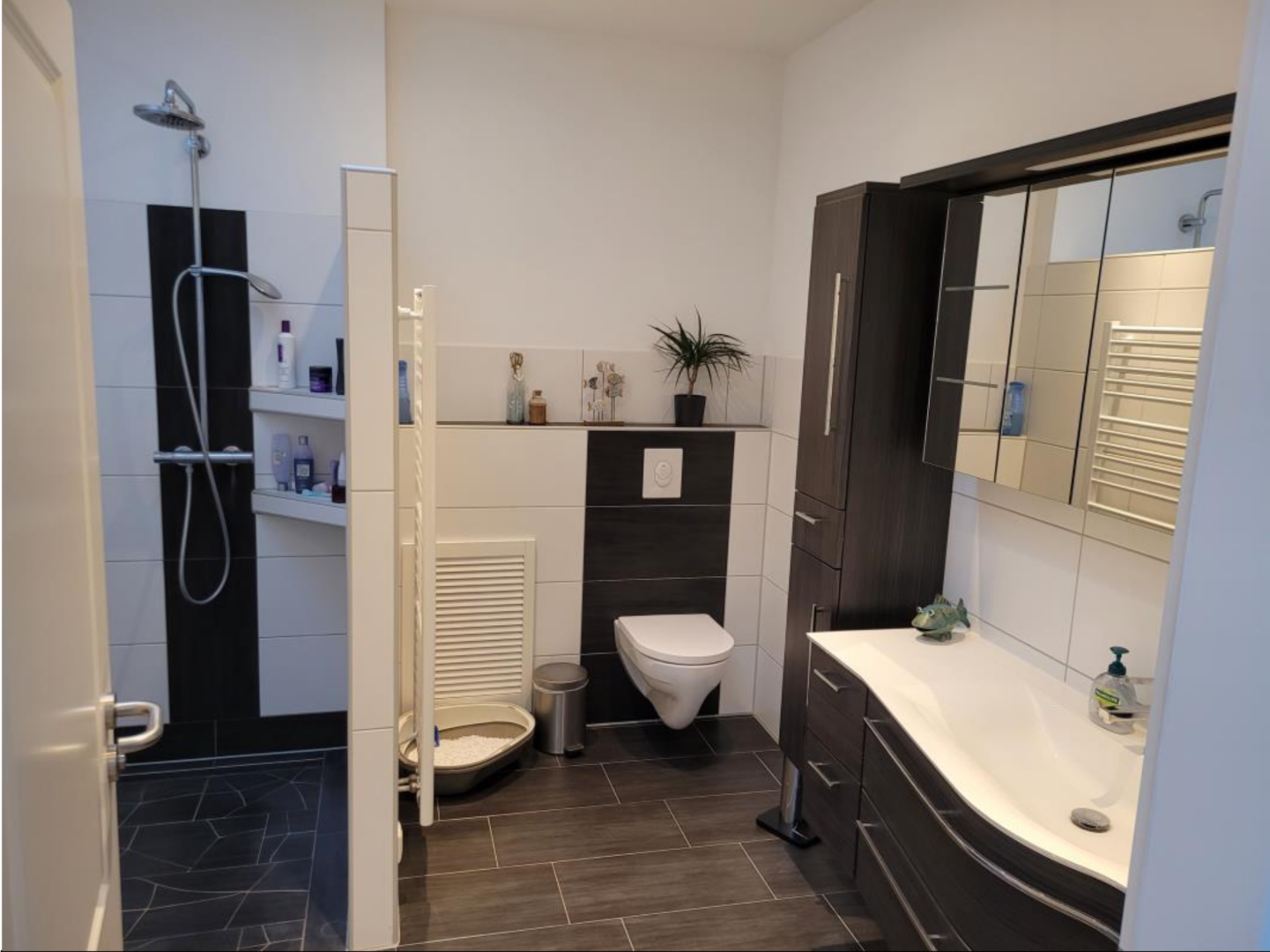 Die ca. 100 m² große Wohneinheit präsentiert sich wie ein kleines, ebenerdiges Zuhause mit eigenem Zugang. Eine private Terrasse und der zugeordnete Gartenanteil bis zum hinteren Grundstückszaun schaffen ein echtes Stück „für sich“ – ideal für alle, die nicht einfach nur eine Wohnung suchen, sondern Ruhe, Grün und ein überschaubares Zuhause mit Hausgefühl.