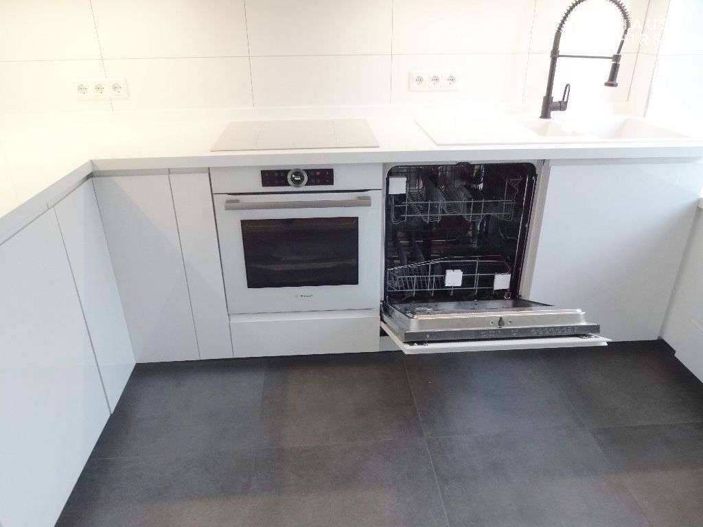 - Moderne Einbauküche mit allen wichtigen Geräten (Waschmaschine, Spülmaschine, Induktionsherd, Kühlschrank)