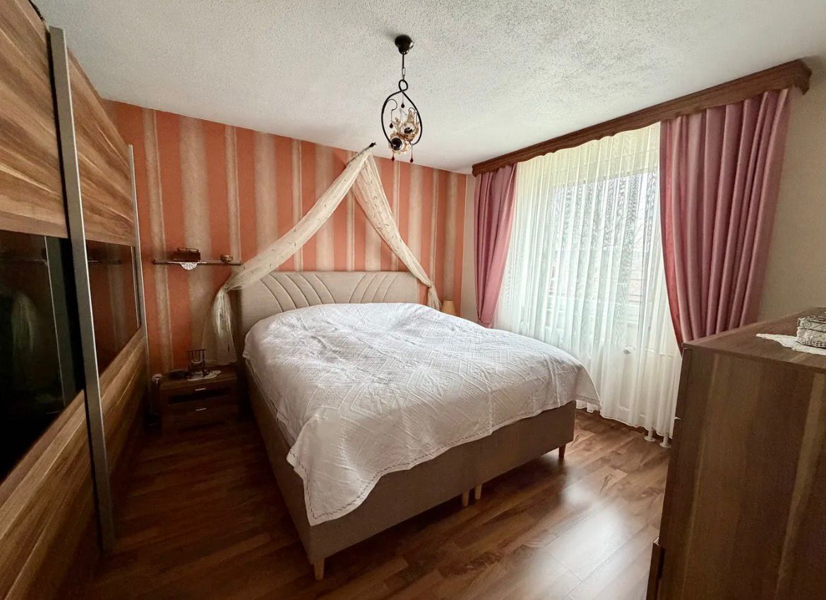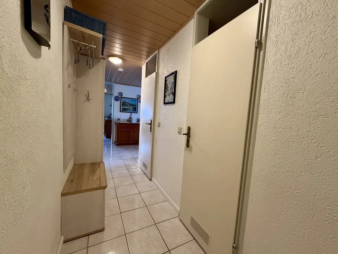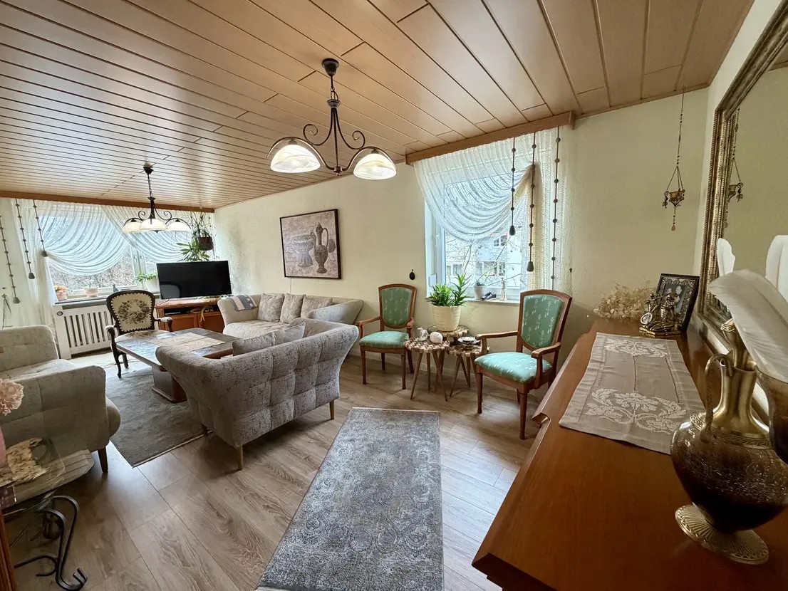 Das Wohnzimmer bietet vielseitige Stellmöglichkeiten für Ihre individuelle Einrichtung. Zwei weitere Zimmer eignen sich ideal als Schlafzimmer, Kinderzimmer, Gästezimmer oder Homeoffice. Die Bodenbeläge bestehen aus einer Kombination aus Fliesen und Laminat, was sowohl pflegeleicht als auch wohnlich ist.