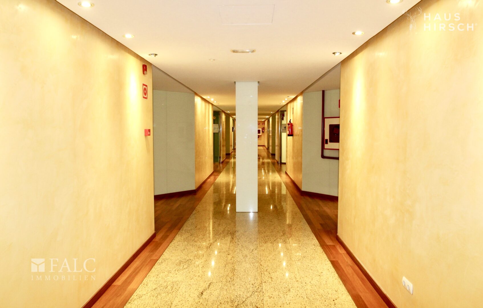 Wenn Sie mit dem Fahrstuhl im dritten Stock angekommen sind, treten Sie in einen edlen und eindrucksvollen Flur ein. Von hier aus gelangen Sie zu Ihrer Bürofläche.