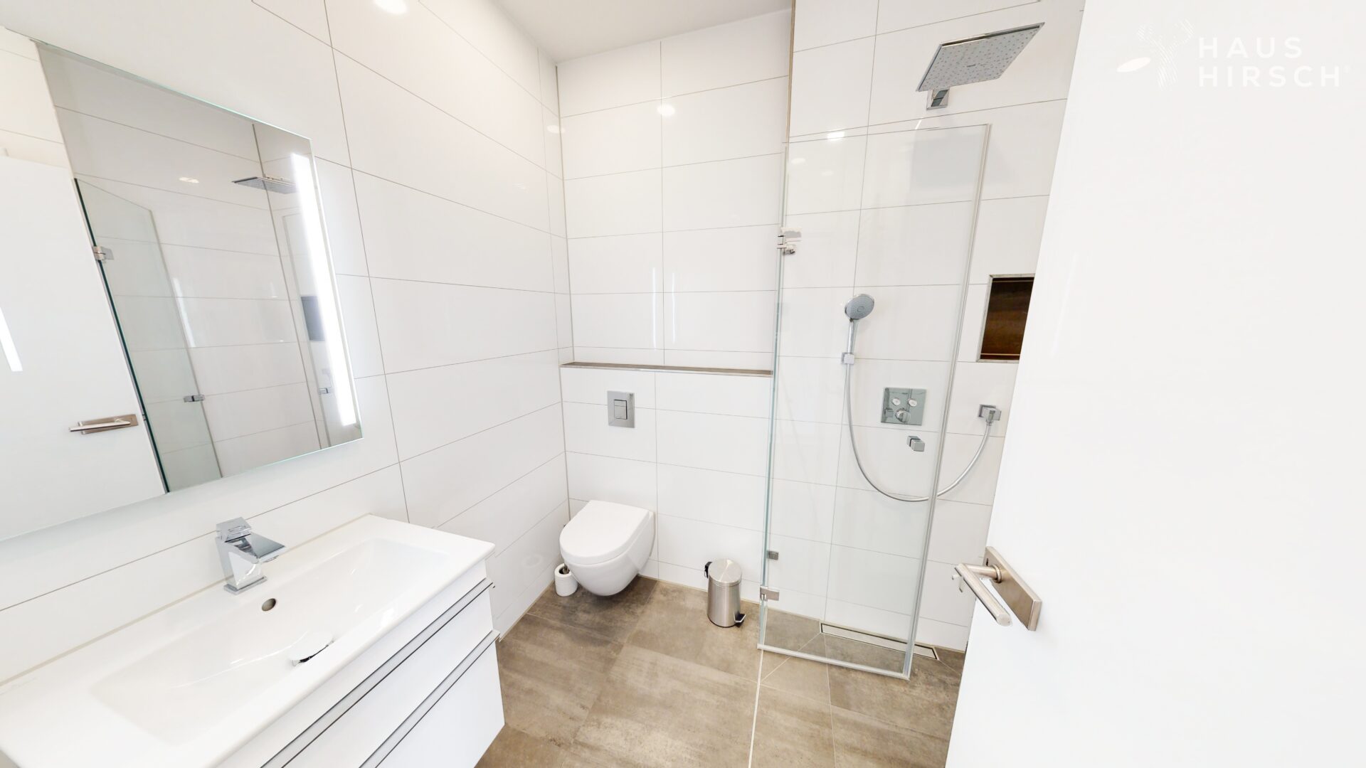 Die beiden Badezimmer wirken sehr stilvoll und modern. Dazu tragen unter anderem die innovativen, bodenebenen Duschen mit Regenduschköpfen bei. In beiden Bädern ist flächendeckend Fußbodenheizung verlegt, wodurch Sie es hier zu jeder Jahreszeit sogar barfuß gemütlich haben werden. Eines der Bäder verfügt über ein Fenster, durch das Tageslicht in den Raum gelangt.
