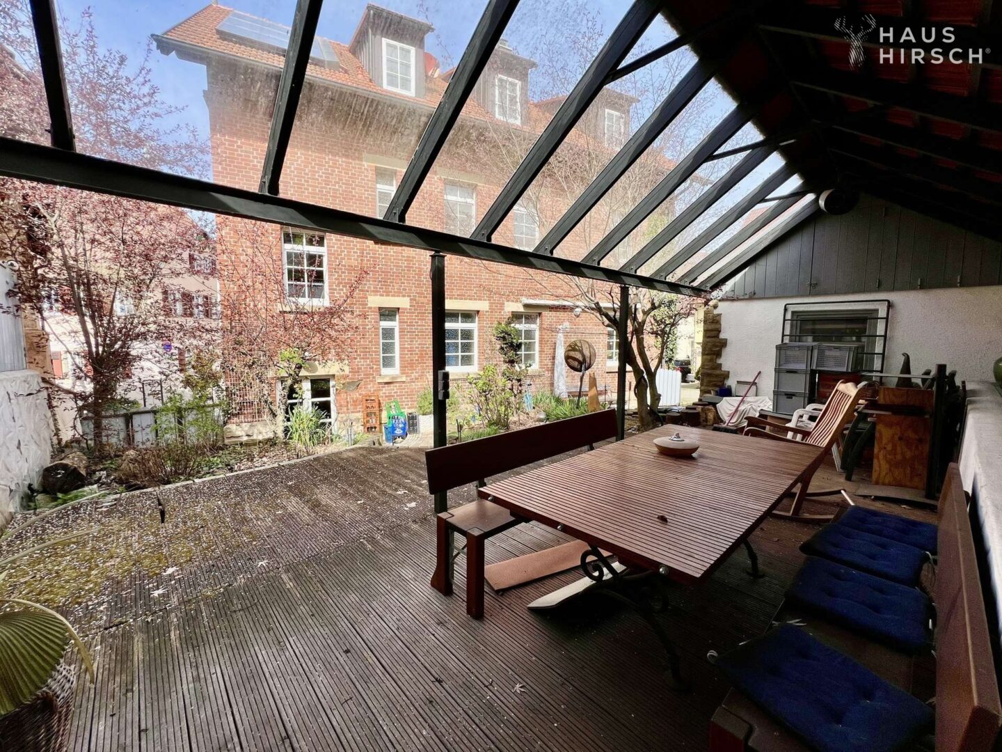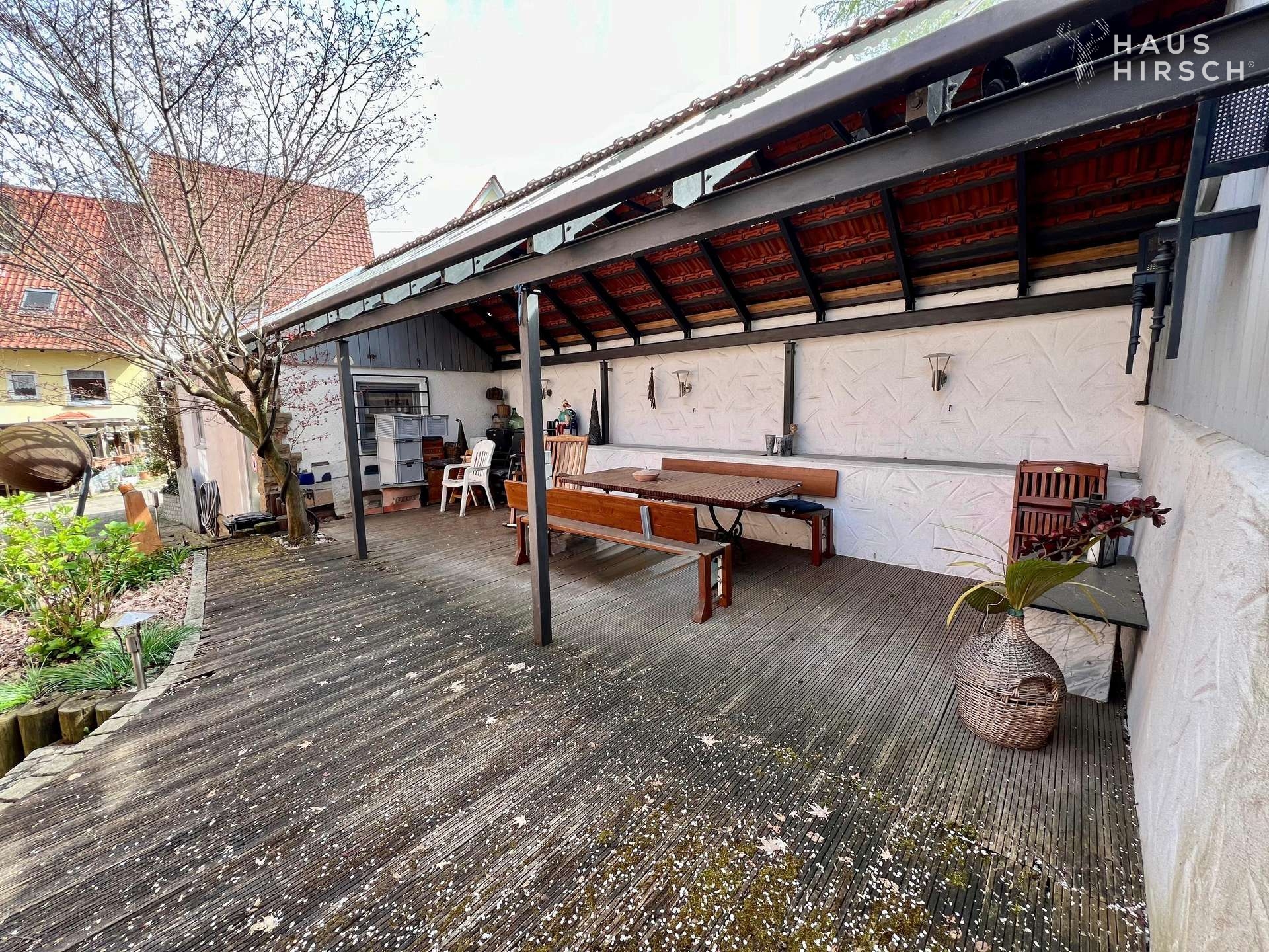 Das Grundstück bietet eine großzügige Gartenanlage mit einer eindrucksvollen Pergola, die mit Eichendielen belegt und verglast ist. Diese lädt zum Verweilen ein und ist ideal für gemütliche Sommerabende. Eine Doppelhofeinfahrt ermöglicht Zugang den zu privaten Stellplätzen und zusätzlich