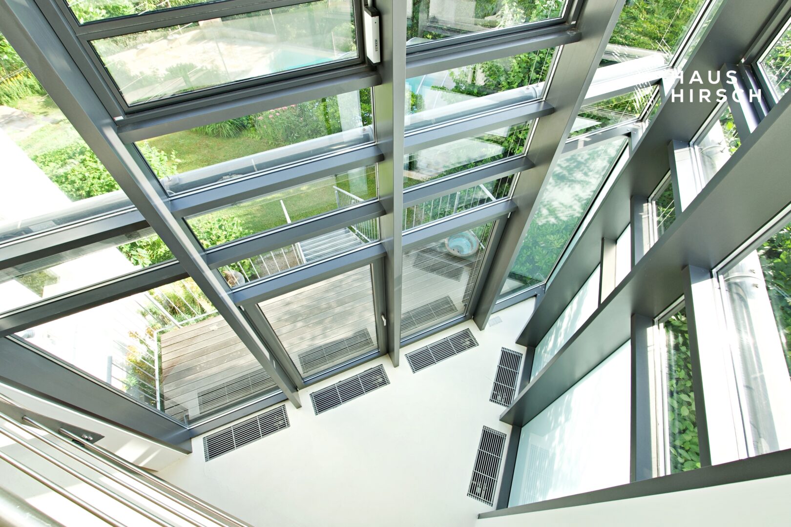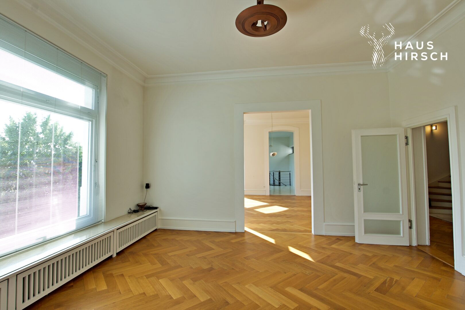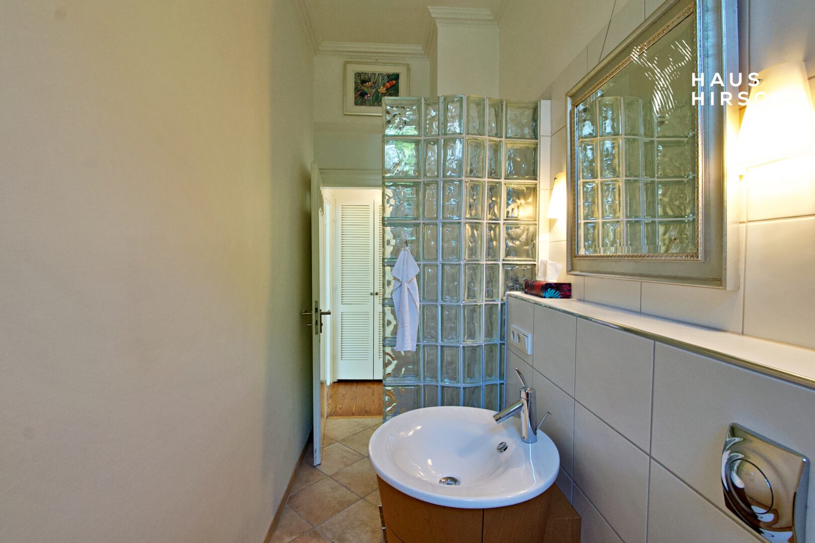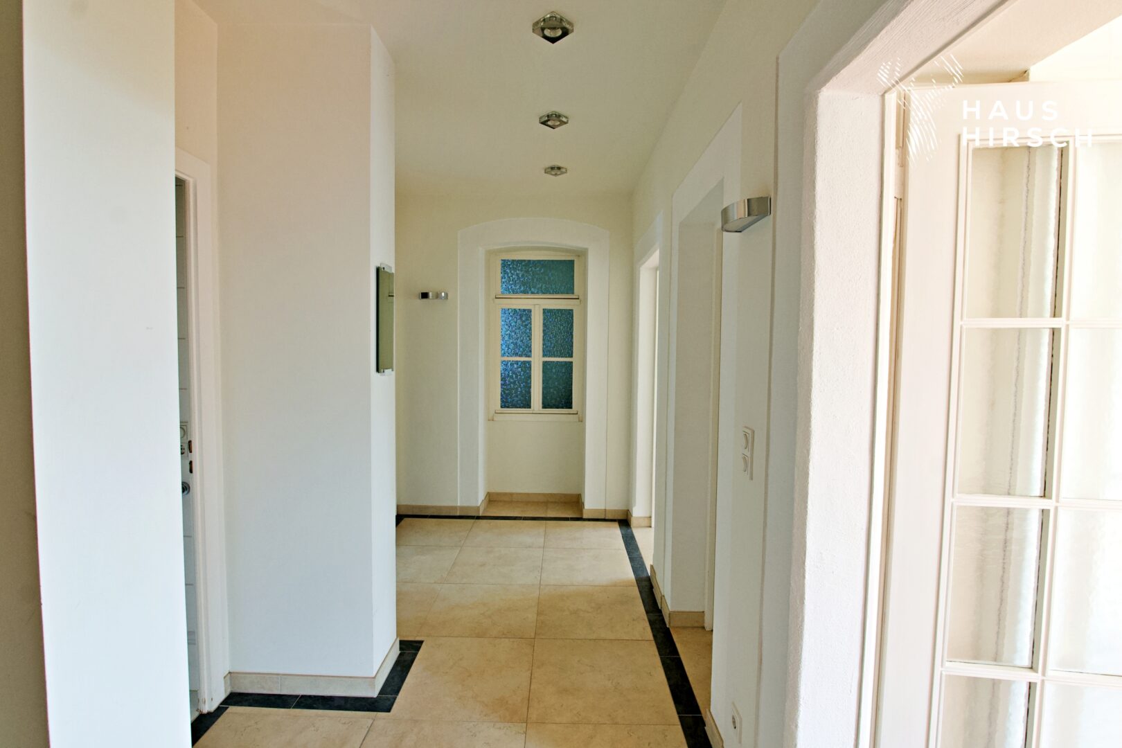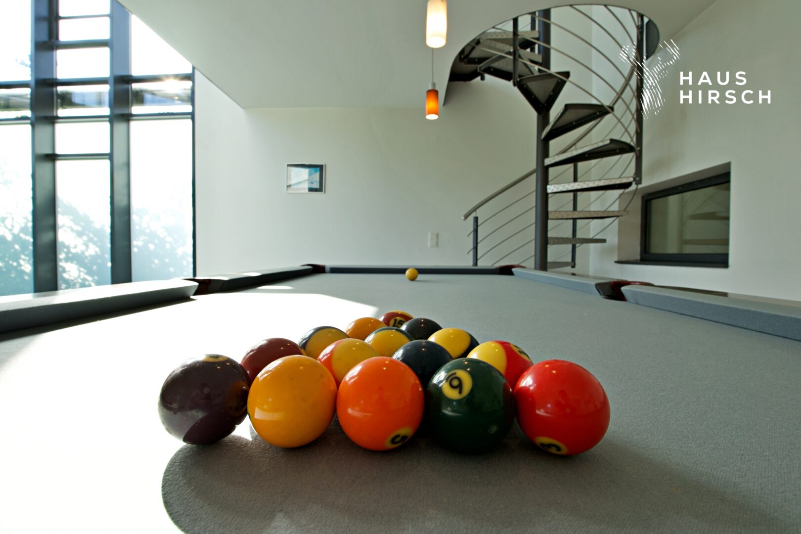 Ein moderner, zweigeschossiger Glasanbau, großzügige Sonnenterrassen, zwei Wintergärten, ein gepflegter Garten sowie ein beheiztes Außenschwimmbad bieten höchsten Wohnkomfort. Die Villa verfügt über 15 Zimmer, vier Badezimmer, zwei voll ausgestattete Küchen und einen privaten Wellnessbereich. Beheizt wird das Anwesen über eine Gaszentralheizung.