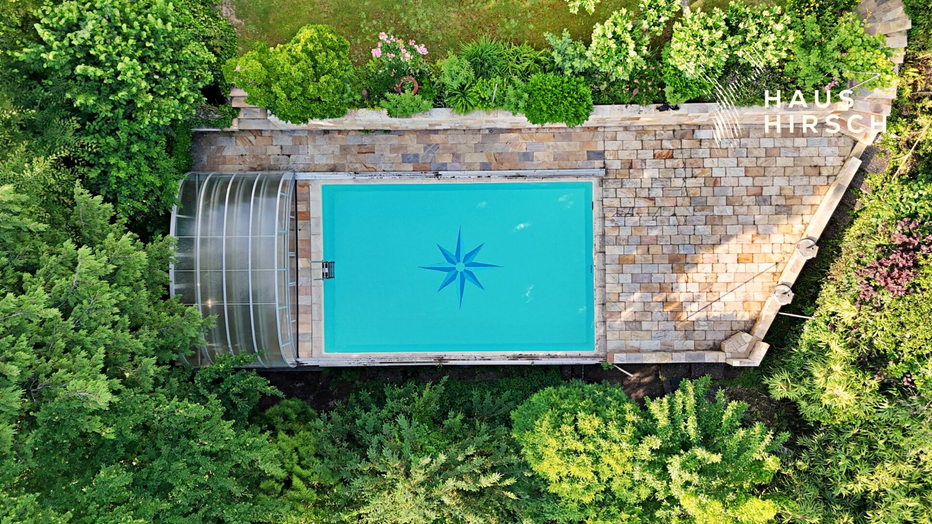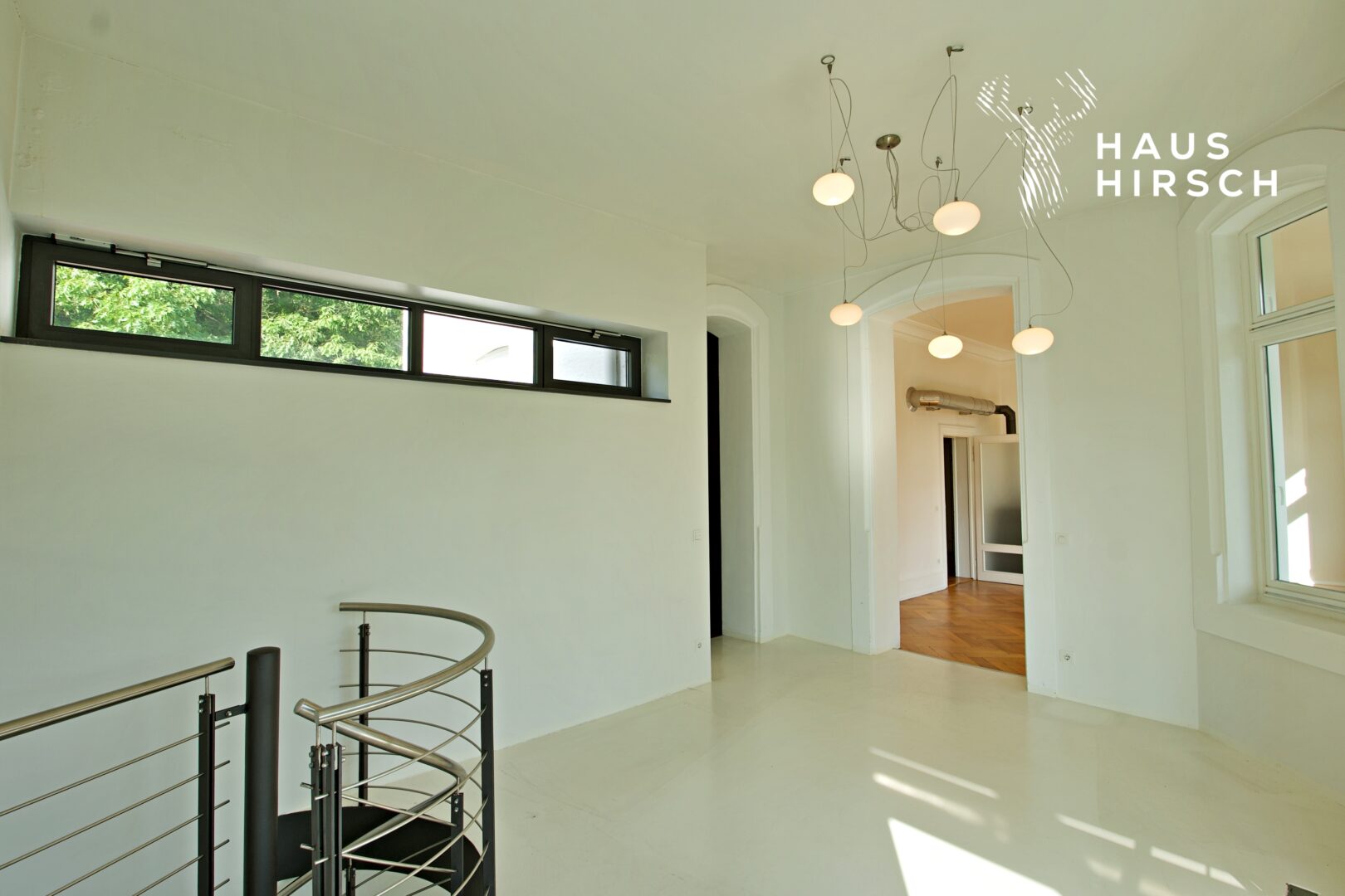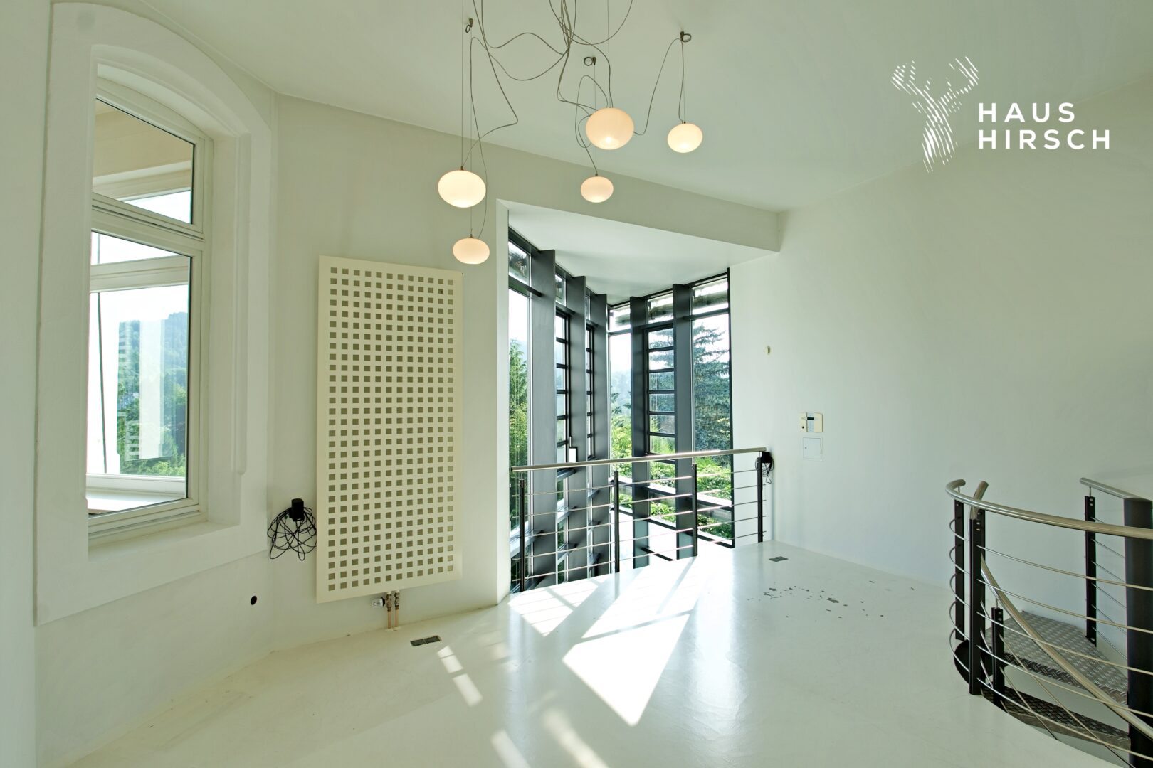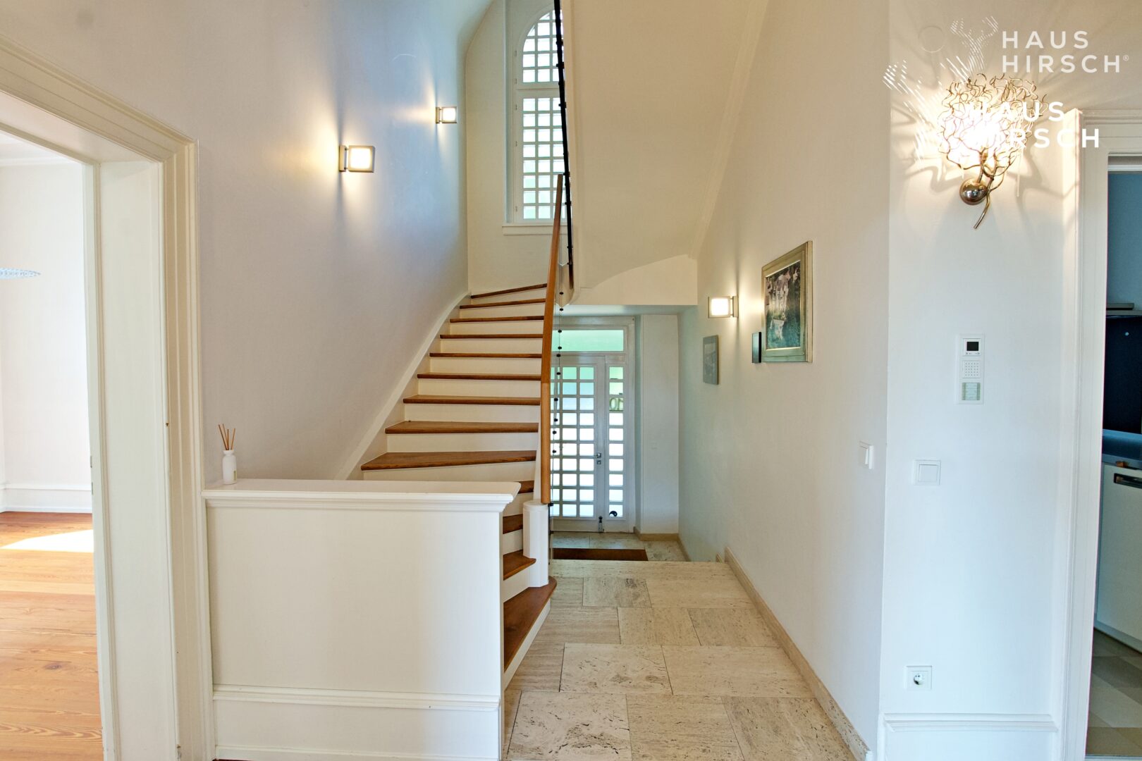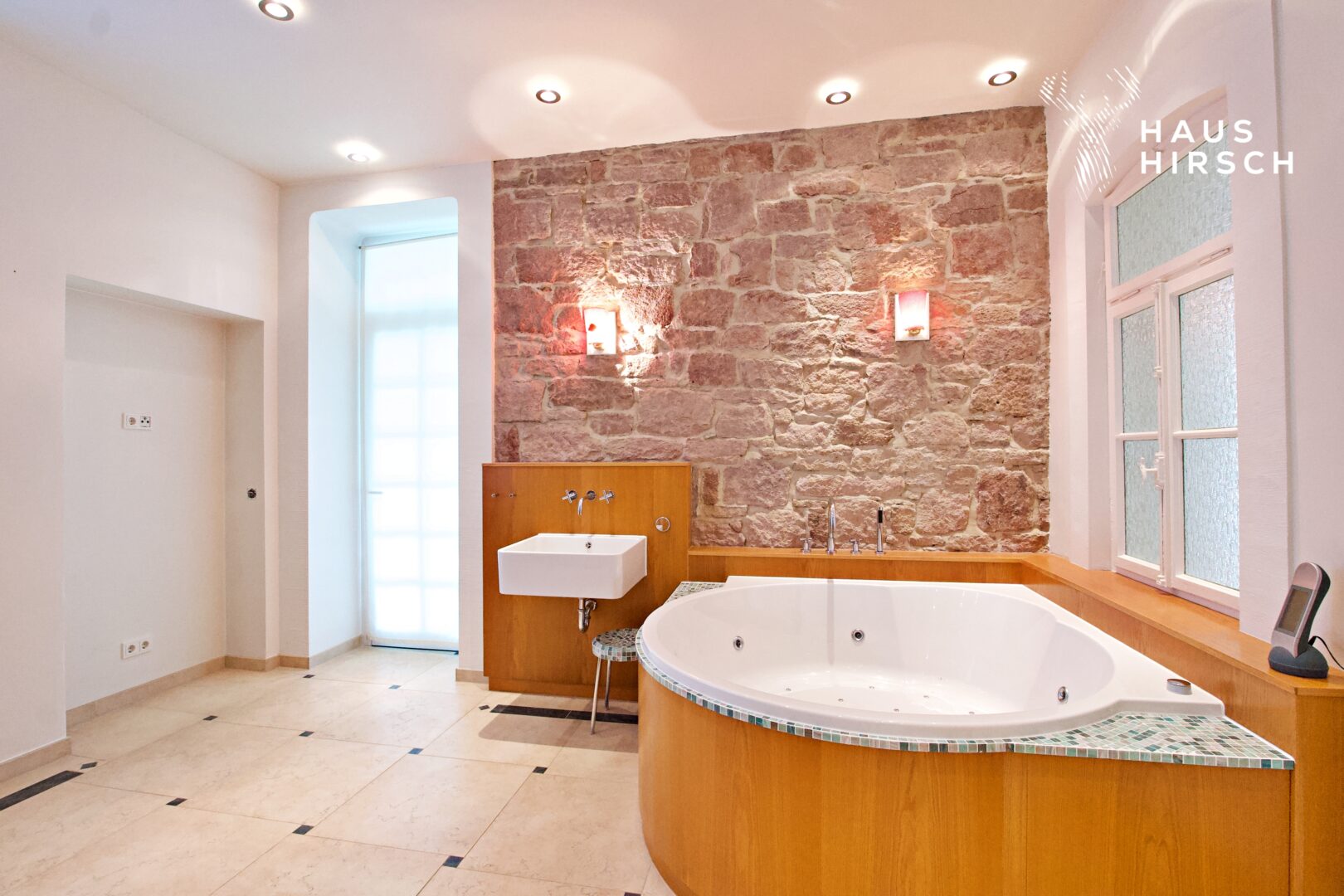 Ein moderner, zweigeschossiger Glasanbau, großzügige Sonnenterrassen, zwei Wintergärten, ein gepflegter Garten sowie ein beheiztes Außenschwimmbad bieten höchsten Wohnkomfort. Die Villa verfügt über 15 Zimmer, vier Badezimmer, zwei voll ausgestattete Küchen und einen privaten Wellnessbereich. Beheizt wird das Anwesen über eine Gaszentralheizung.