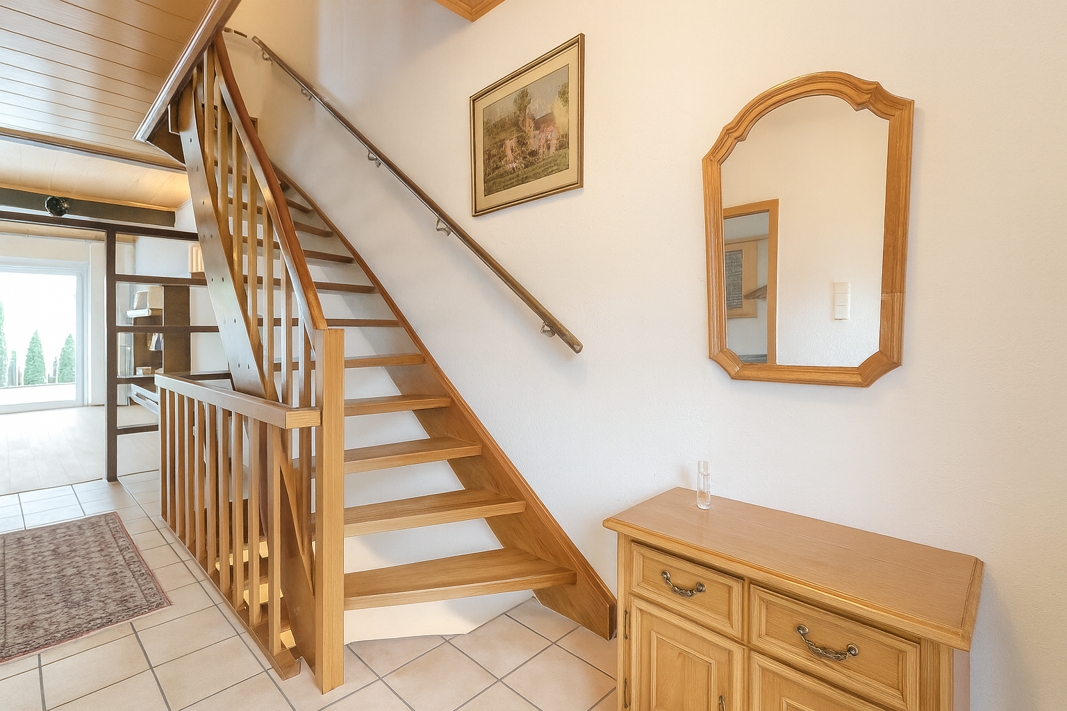 Die Lassen Sie sich beim Betreten des einladenden Hauseingangsbereichs sowohl von dem einzigartigen Charme als auch von den offenen, lichtdurchfluteten Räumlichkeiten dieser Immobilie begeistern und inspirieren. Dieses Haus ist perfekt für Familien, die ein helles und freundliches Zuhause suchen, in dem sie sich rundum wohlfühlen, frei entfalten und gestalten können.