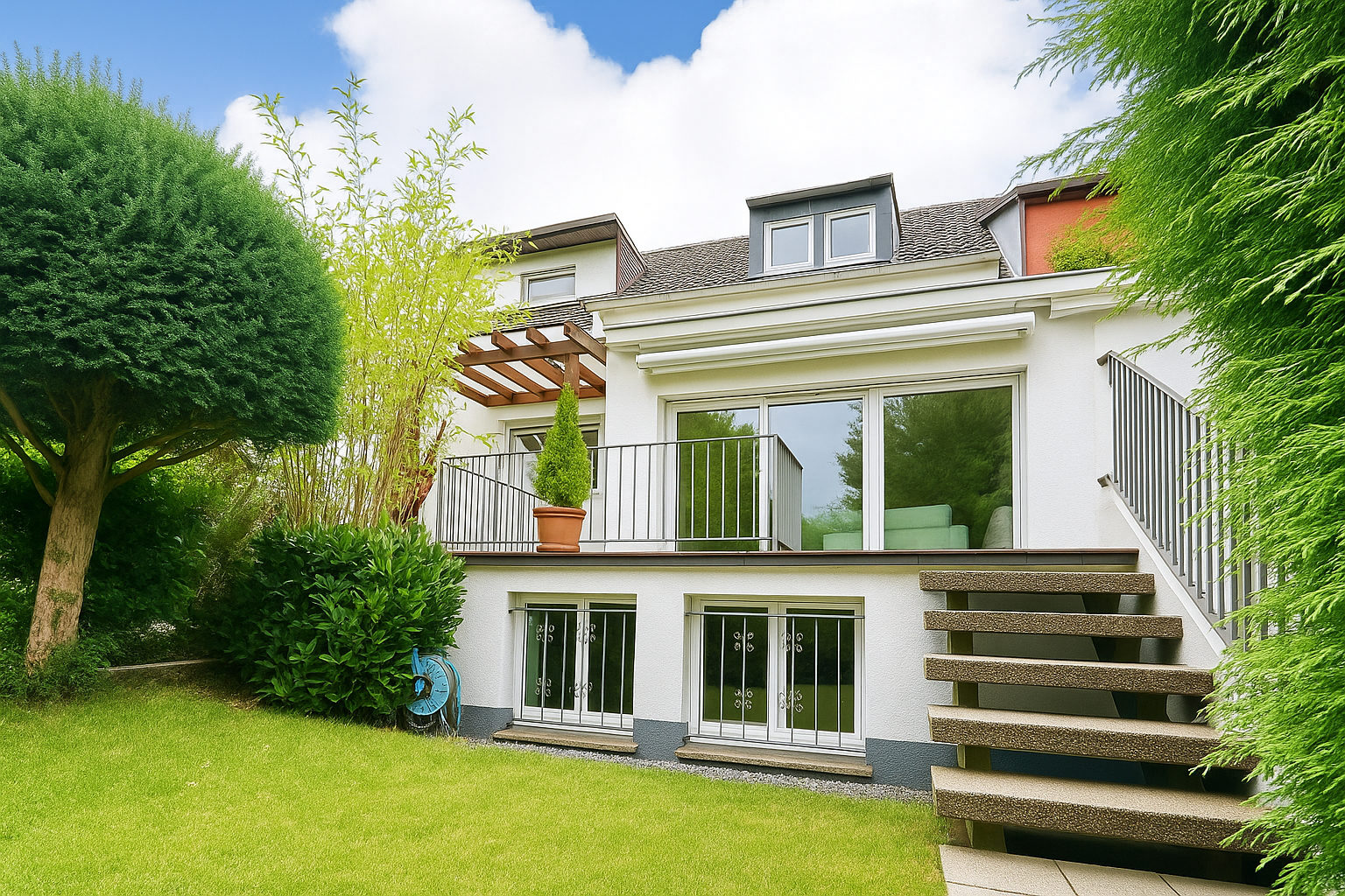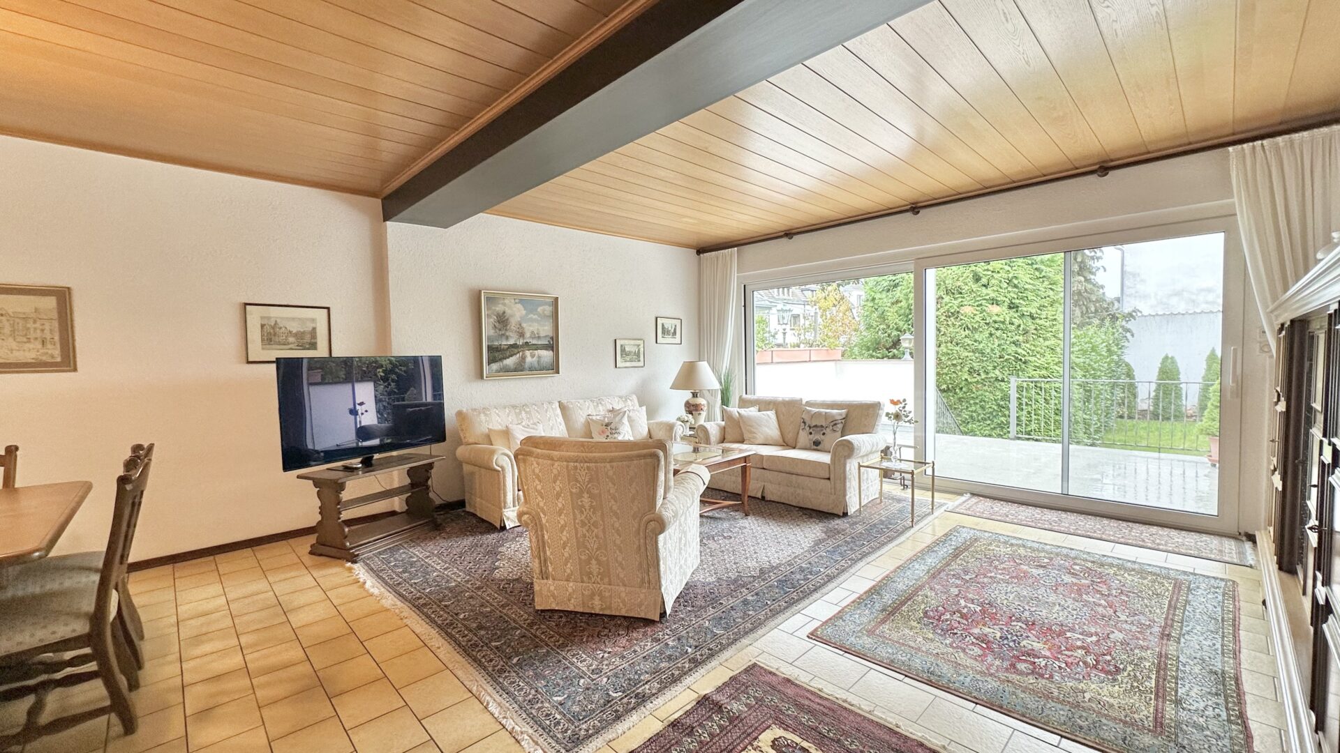 Das Herzstück des Hauses bildet der weitläufige Wohn- und Essbereich mit direktem Zugang zur Terrasse. Von hier aus gelangen Sie in den sonnigen Garten – eine grüne Oase mitten in der Stadt, ideal für entspannte Stunden mit Familie und Freunden.