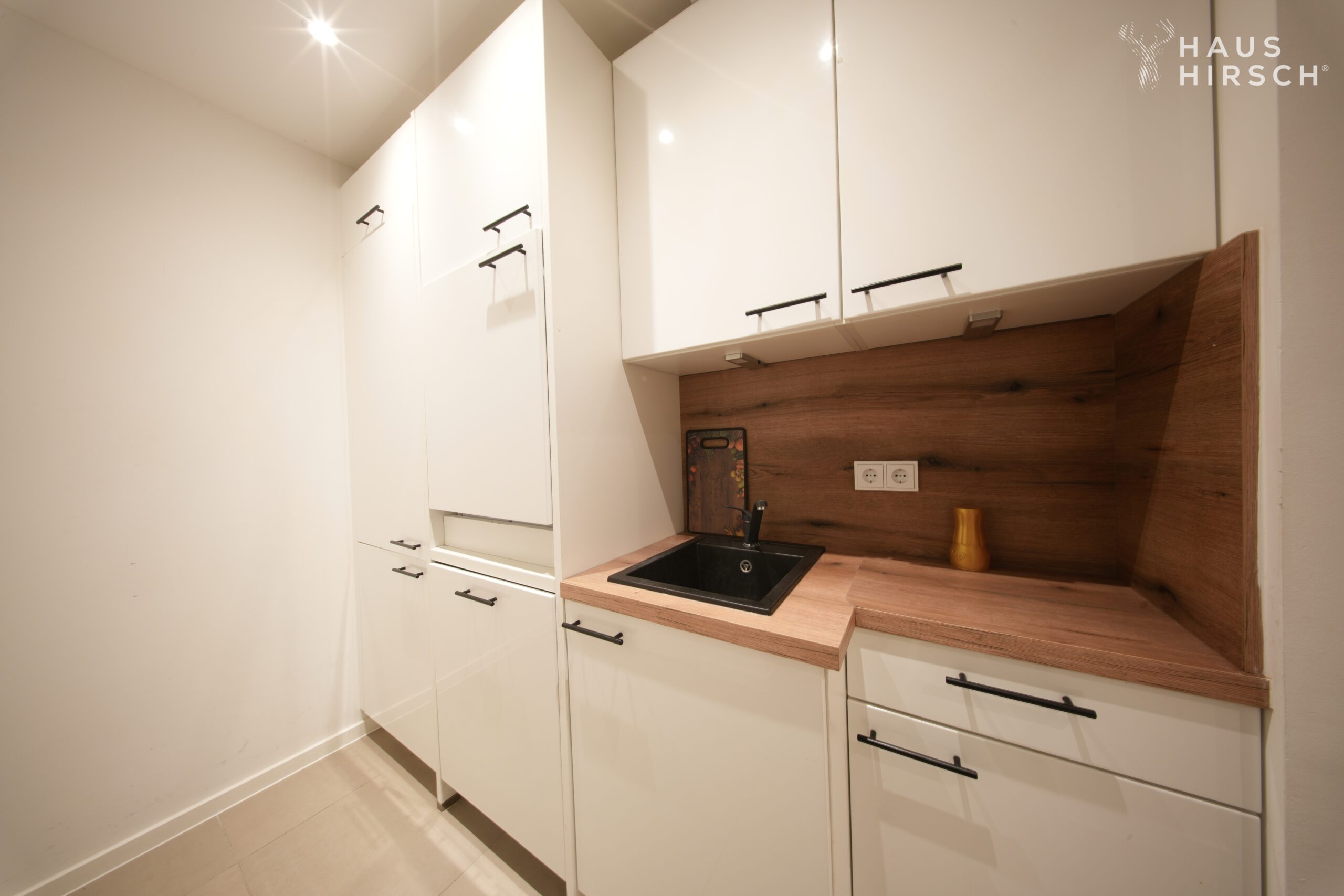 Die Wohnung überzeugt mit einer ästhetischen, hochwertigen Sanierungsqualität: neue Elektrik, neue Wasserleitungen, neue Böden, ein komplett neu aufgebautes Bad und eine maßgeschneiderte Küche – alles nach IMMOWERT-Standard modernisiert.