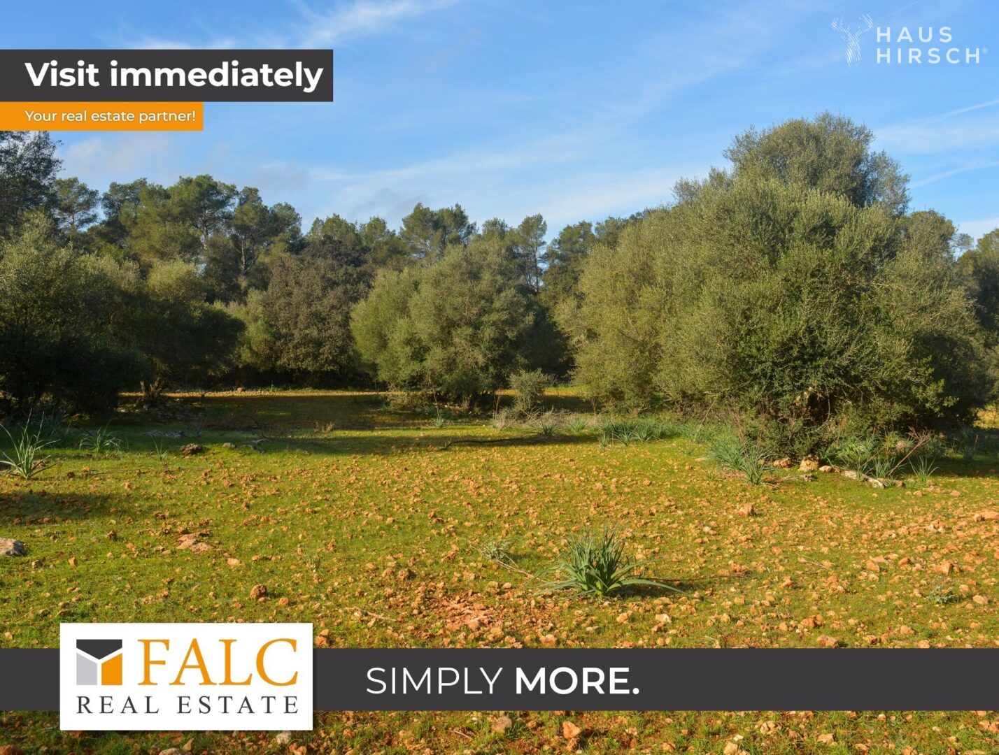 Das riesige Grundstück zeigt viele Facetten und bietet viele Möglichkeiten, ruhige Rückzugsorte zu schaffen oder den Hafer für eventuell vorhandene Pferde selbst anzubauen. Es gibt halbschattige, verwunschene Plätze unter alten, ausladenden Baumkronen, offene sonnige Felder und dichtes Buschwerk. Johannisbrot- und Mandelbäume, herrliche Feigenbäume und riesige Steineichen verleihen dem Grundstück seinen unverwechselbaren Charakter. Ein Traum für jeden Naturliebhaber!
