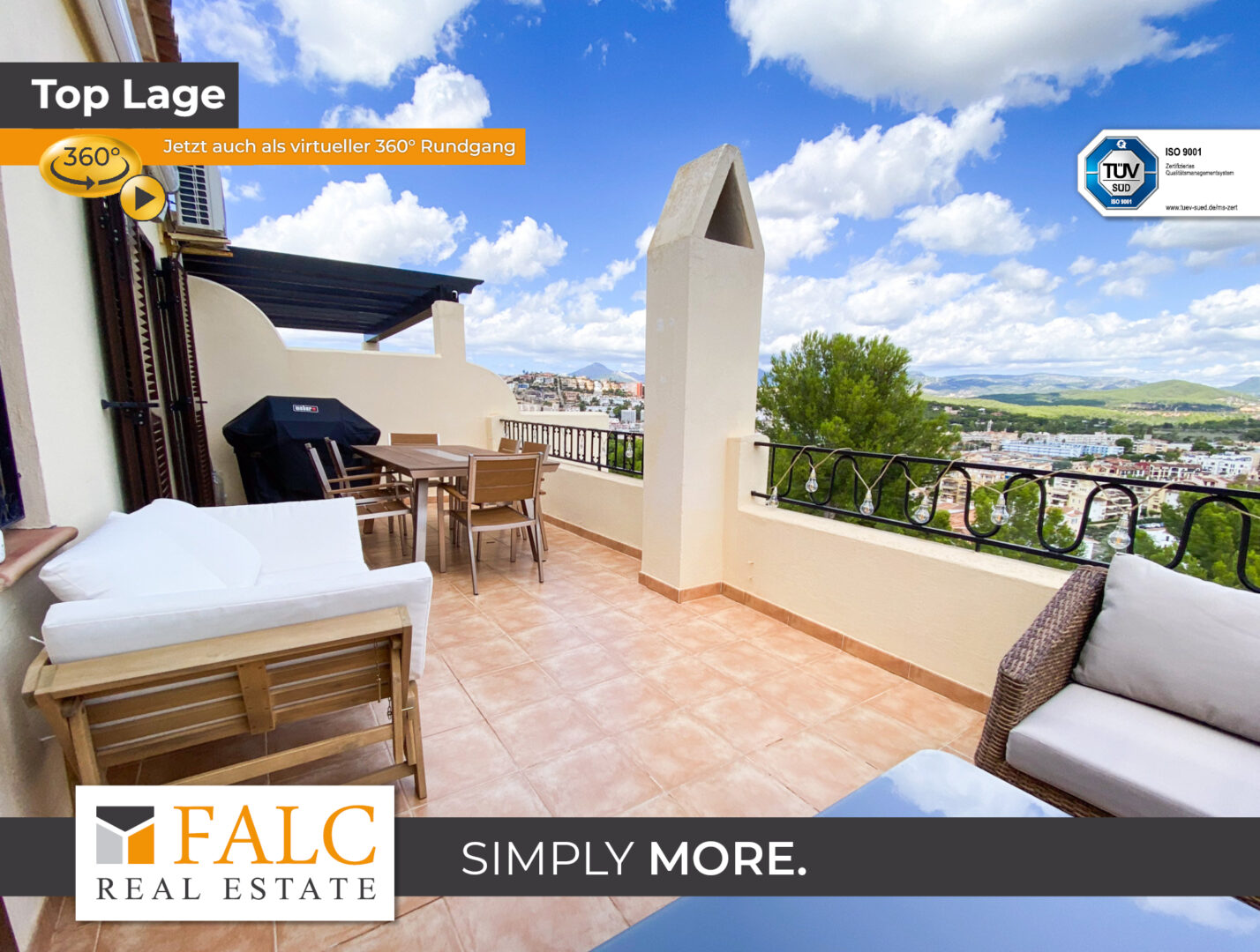 Die Wohnung verfügt desweiteren über zwei elektrische Markisen und Outdoor Lautsprecher installiert.