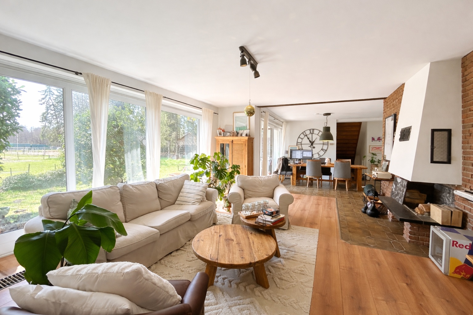 Auf ca. 109 m² Wohnfläche im Erdgeschoss erwartet Sie ein funktionaler und zugleich familiengerechter Grundriss mit zwei gut geschnittenen Schlafzimmern sowie einem großzügigen Wohn- und Essbereich, der den zentralen Lebensmittelpunkt des Hauses bildet. Die angrenzende Küche ist praktisch angebunden und ergänzt den Wohnbereich sinnvoll. Vom Essbereich aus gelangen Sie über eine Schiebetür direkt auf die Terrasse. Von hier aus bietet sich ein leicht erhöhter Blick in den großzügigen, nach Süden ausgerichteten Garten sowie auf die angrenzenden Pferdekoppeln. Das Tageslichtbad ist mit Dusche und Badewanne ausgestattet, ein separates Gäste-WC ergänzt den Grundriss sinnvoll. Die Räume im Erdgeschoss sind überwiegend modernisiert und durch die bodentiefen Fenster entsprechend hell. Das gesamte Erdgeschoss ist mit Rollläden ausgestattet, die sowohl einzeln als auch zentral gesteuert werden können.
