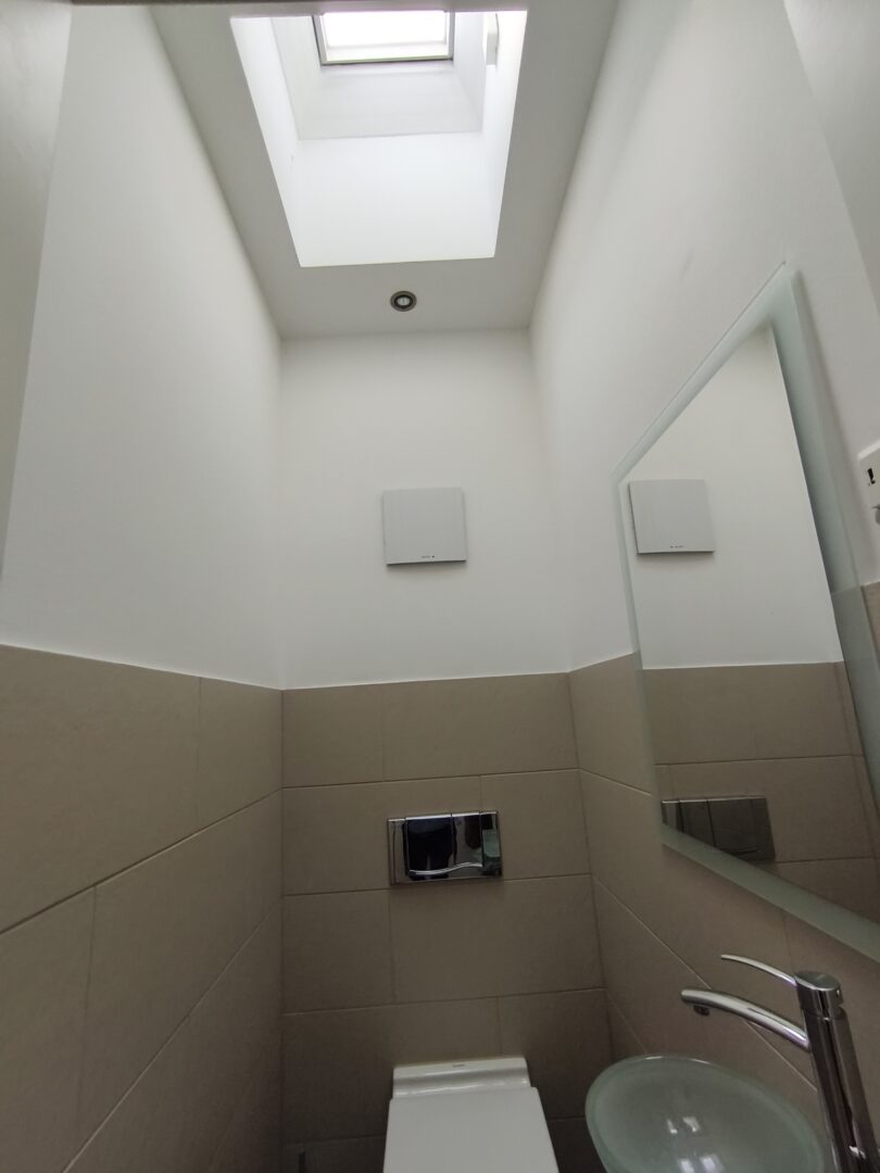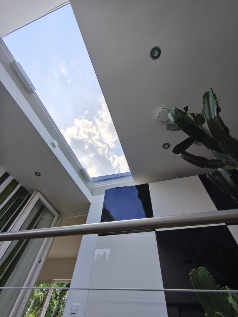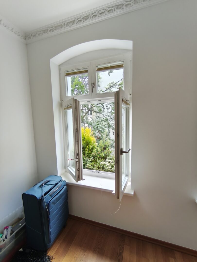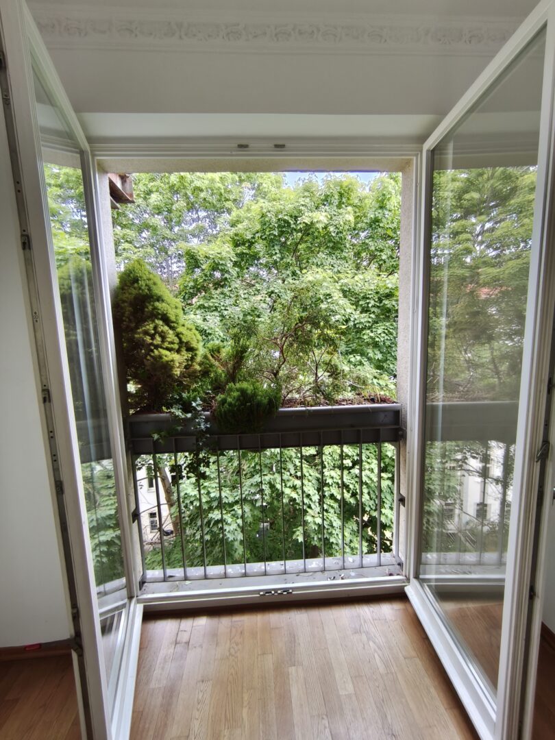 Vor dem Eingang zur Wohnung stehen Sukkulenten, die durch natürliches Oberlicht gut beleuchtet werden. Sie bilden den Beginn des kleinen "Botanischen Gartens". Die gesamte Wohnung vermittelt den Eindruck einen Hauses im Grünen, mit viel Licht und vielen Pflanzen. Die Wohnung wird durch verschiedene Oberlichter und viele Fenster sehr gut beleuchtet. Und es gibt viele interessante Details. Das fängt bei der Wohnungstür an, die von außen ganz historisch aussieht, tatsächlich eine Sicherheitstür ist. Die Innenseite dieser Tür ist ein großer Spiegel. Oberlicht im Flur, Oberlicht im Gäste-WC. Stück an der Decke in allen Zimmern. Es gib ein zentrales Soundsystem in allen Räumen.