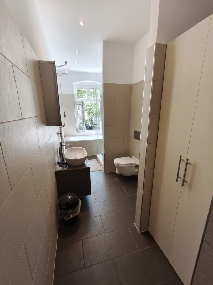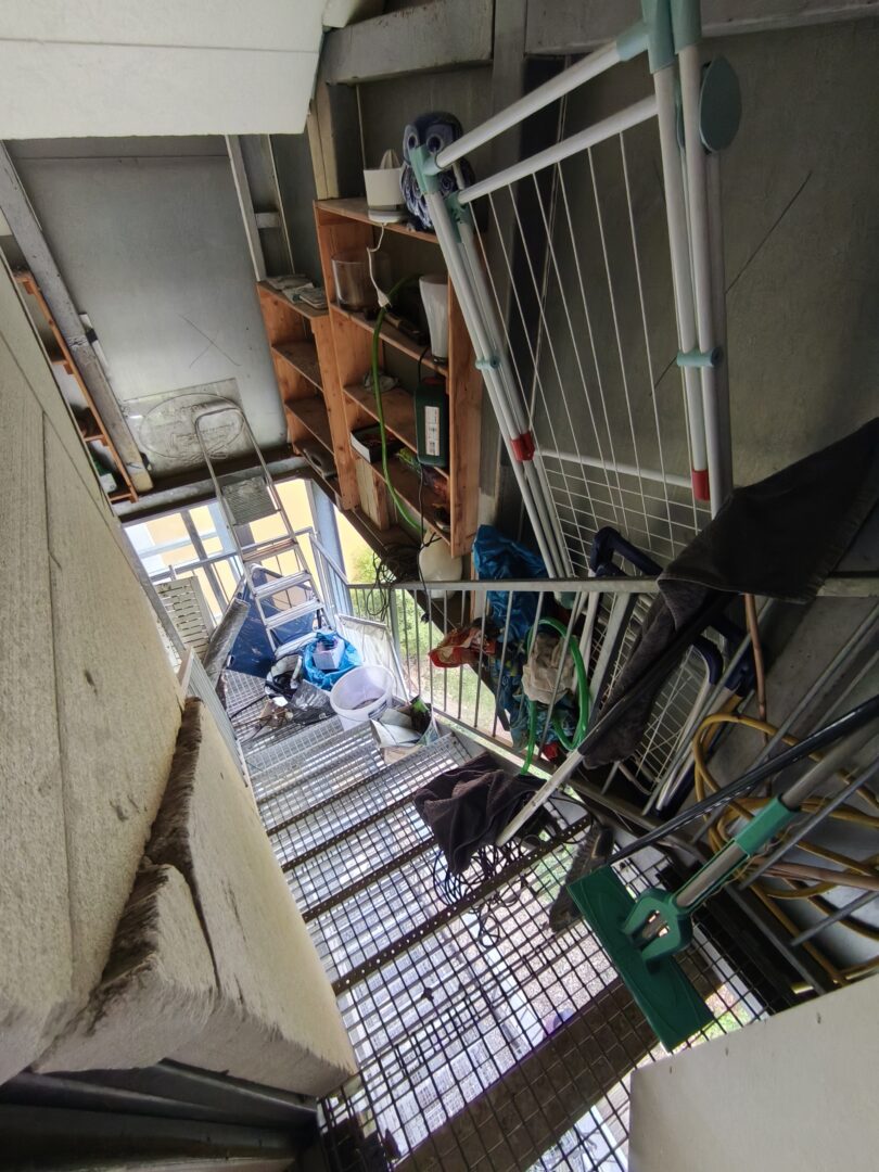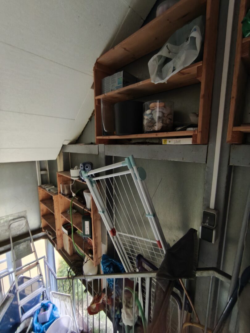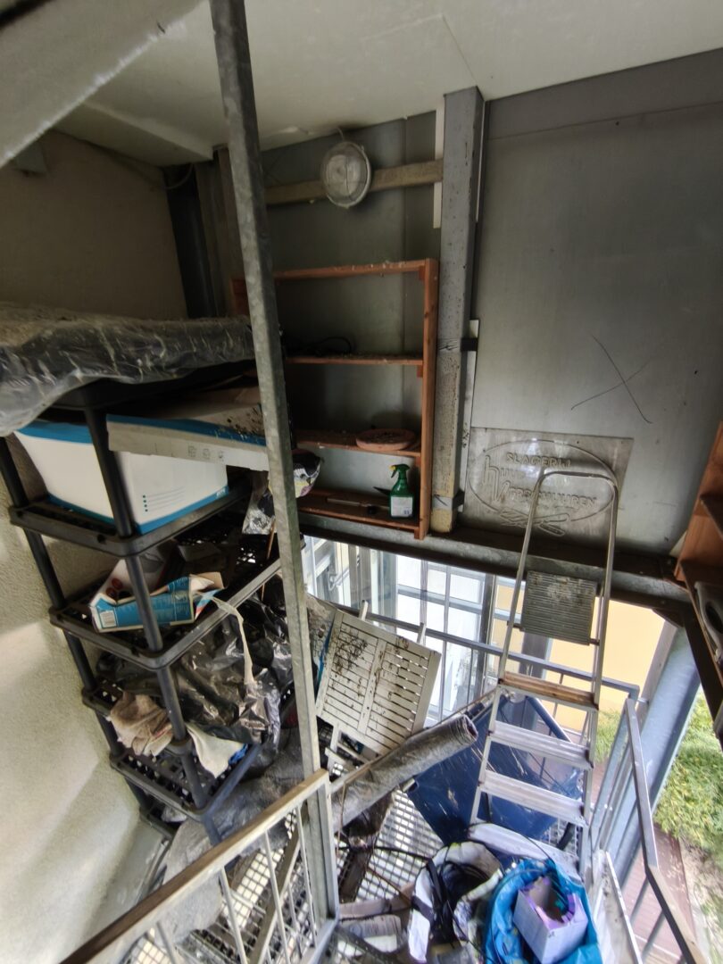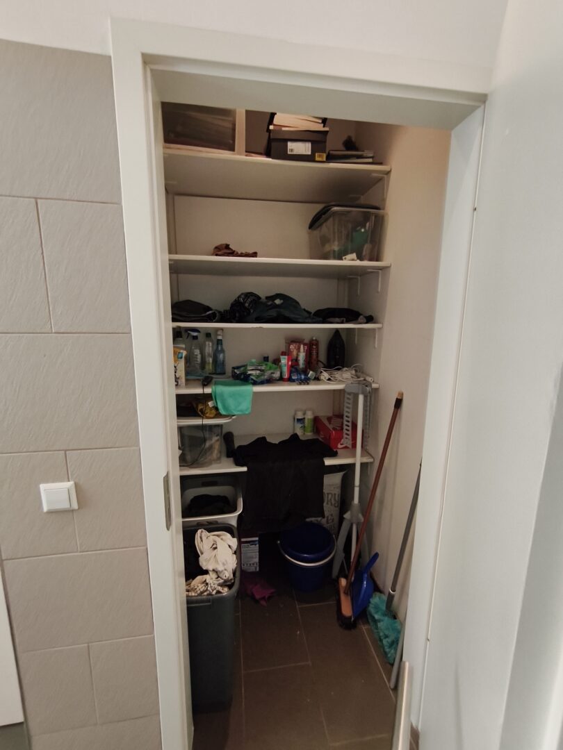 Zur Wohnung gehören Keller. Da die Feuer-Rettungs-Treppe exklusiv nur von dieser Wohnung verwendet wird, gibt es in dieser an den Innenwänden weiteren Stauraum: Diese Treppe kann als zusätzlicher Außen-Schuppen verwendet werden.