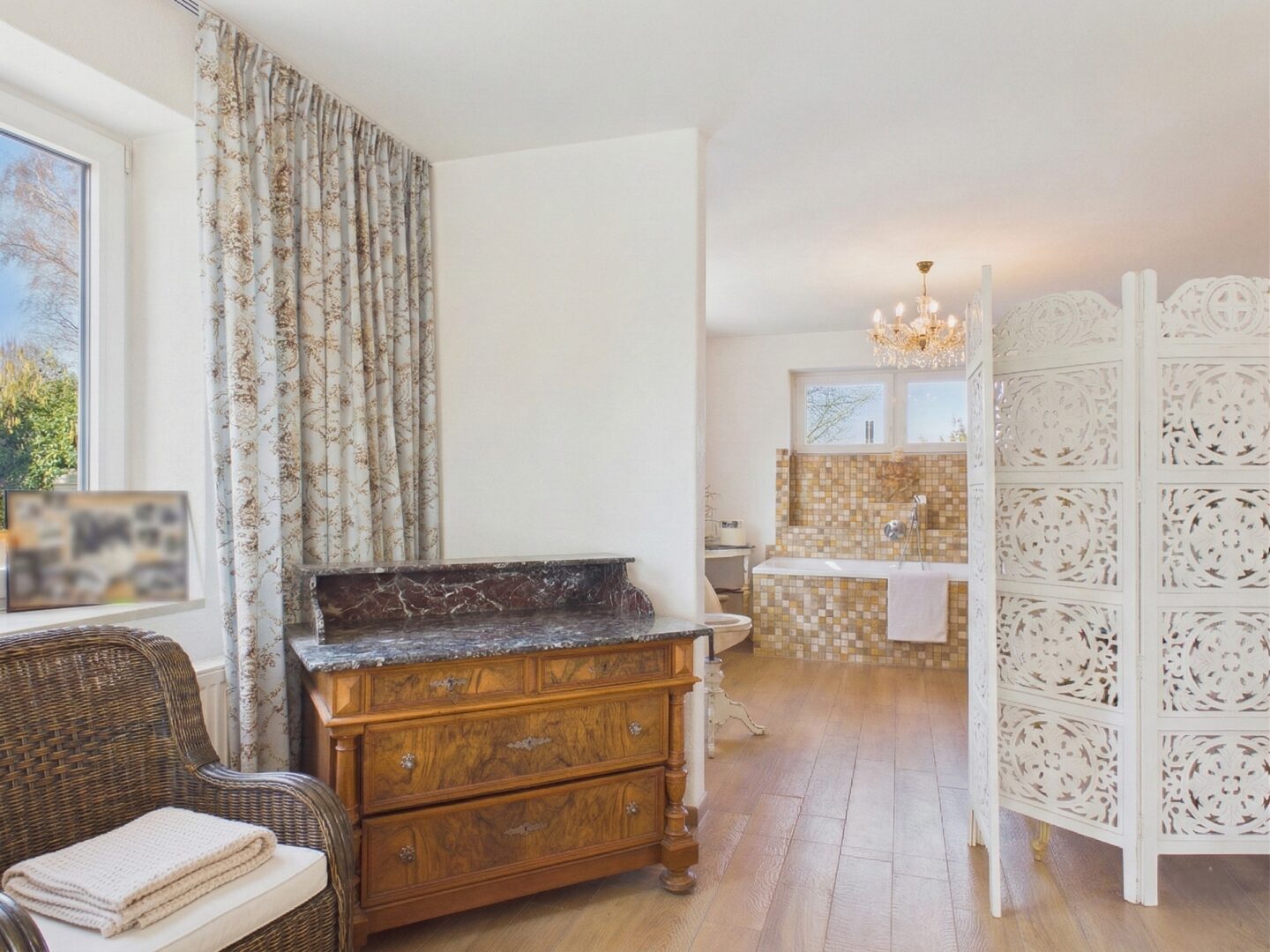 Dachgeschoss: Das 2013 ausgebaute Dachgeschoss bietet eine zusätzliche 2-Zimmer-Wohnung mit Studio, integrierter Küche und Kaminofen. Dank des offenen Treppenhauses lassen sich das Ober- und Dachgeschoss flexibel als eine sehr große, zusammenhängende Wohneinheit nutzen.