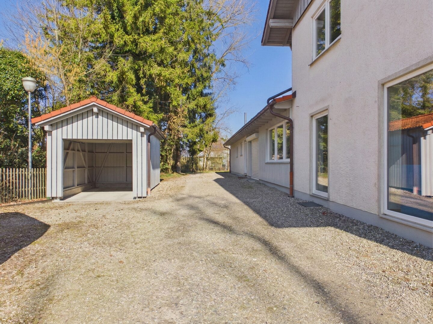 Außenbereich: Ein großzügiger Hof mit sechs Stellplätzen und Carport bietet ausreichend Platz für Kunden und Fuhrpark.