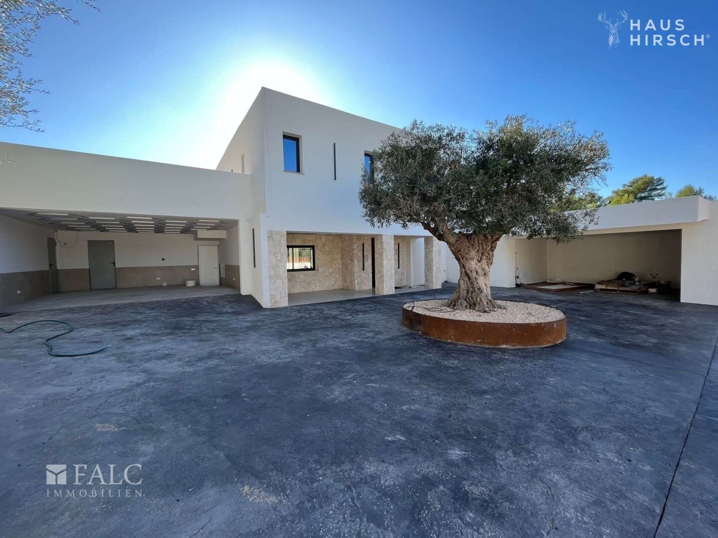 Die Villa erstreckt sich über eine großzügige Wohnfläche von ca. 459 m² und verfügt über ein geräumiges Studio mit etwa 92 m², das Ihnen vielfältige Nutzungsmöglichkeiten bietet. Im Erdgeschoss befindet sich ein Schlafzimmer, während sich im Obergeschoss drei weitere Schlafzimmer mit jeweils eigenem Duschbad en Suite befinden. Dies gewährleistet höchste Privatsphäre und Komfort für Ihre Familie und Gäste.