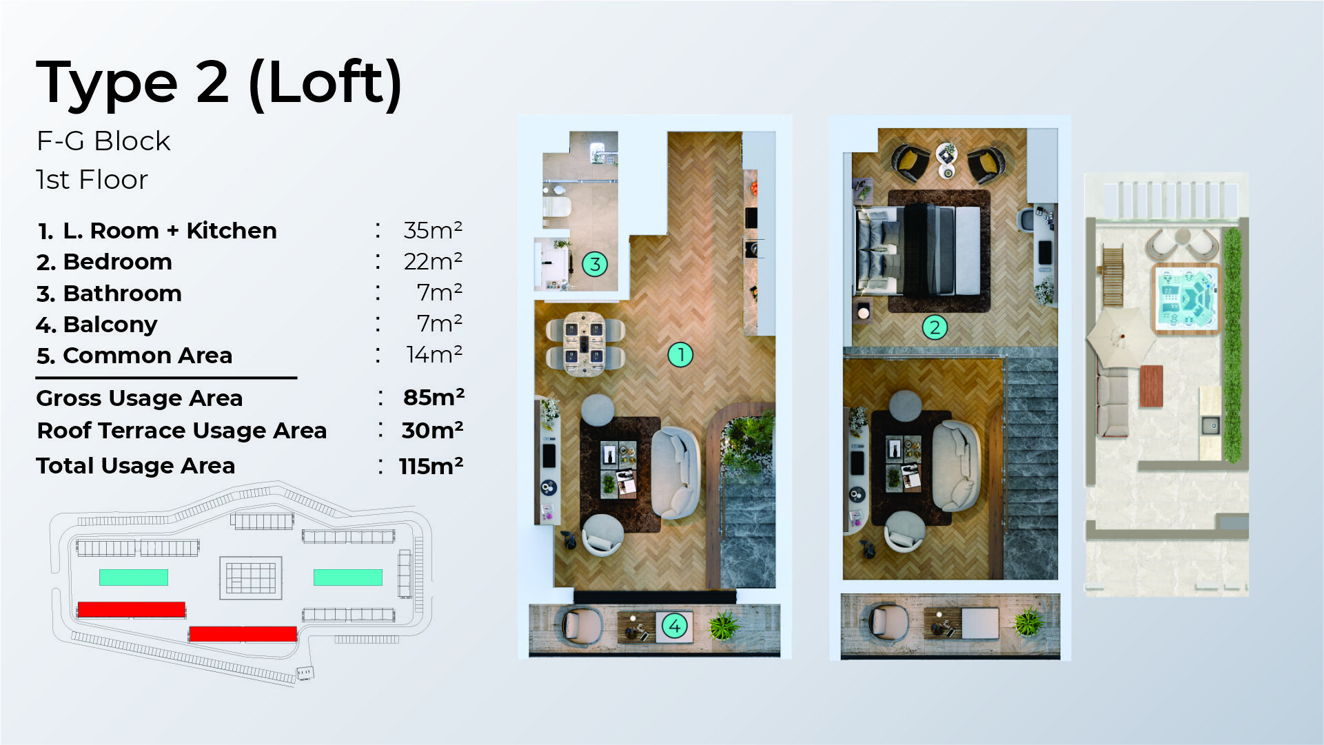 Jede Einheit besticht durch großzügige, lichtdurchflutete Räume, eine elegante Innenausstattung und hochwertige Materialien – ein Ort, der Ruhe und Lebensqualität auf höchstem Niveau bietet.
