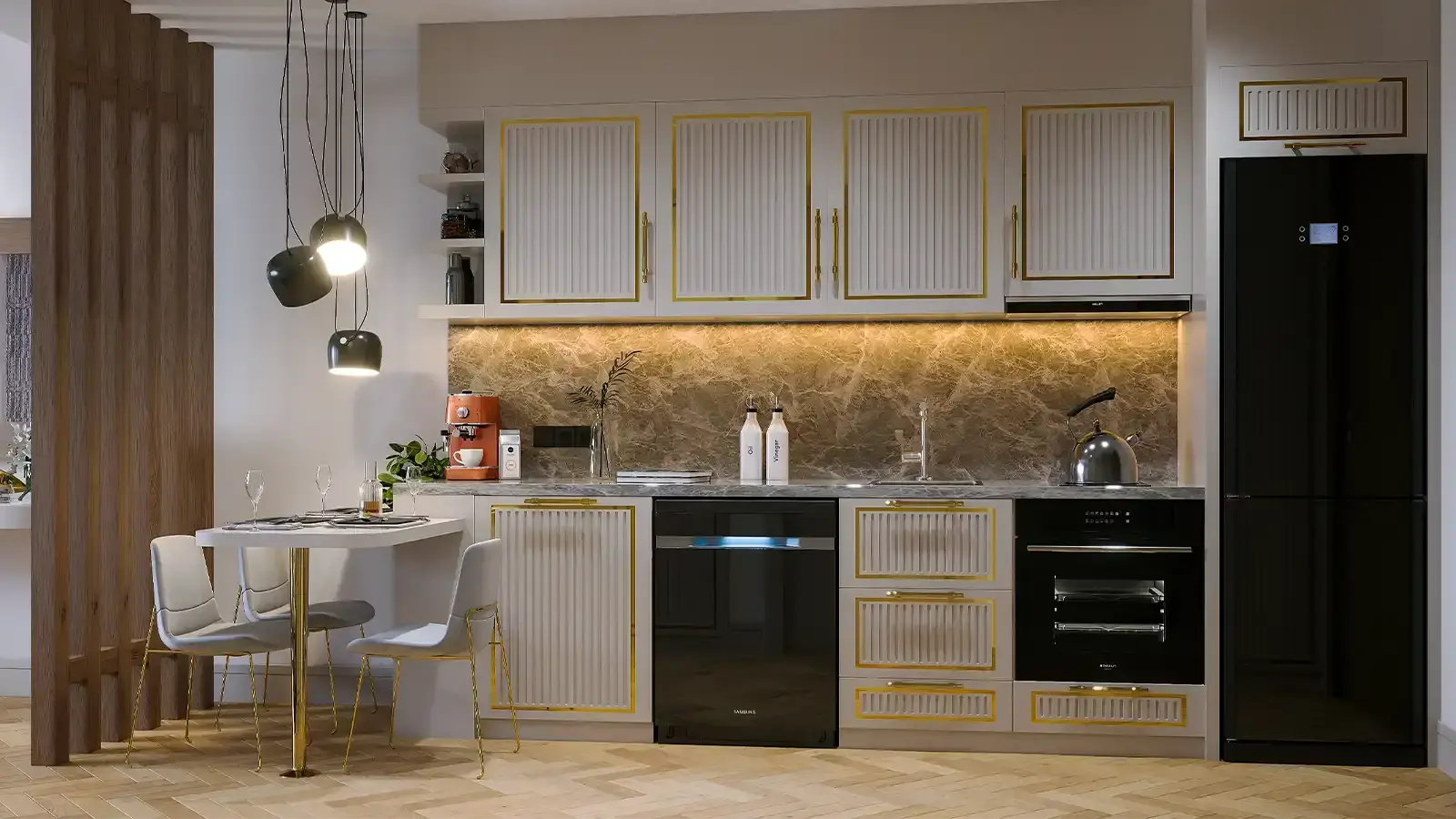 🍽 Offene, voll ausgestattete Küchen mit edlen Arbeitsflächen und Einbaugeräten