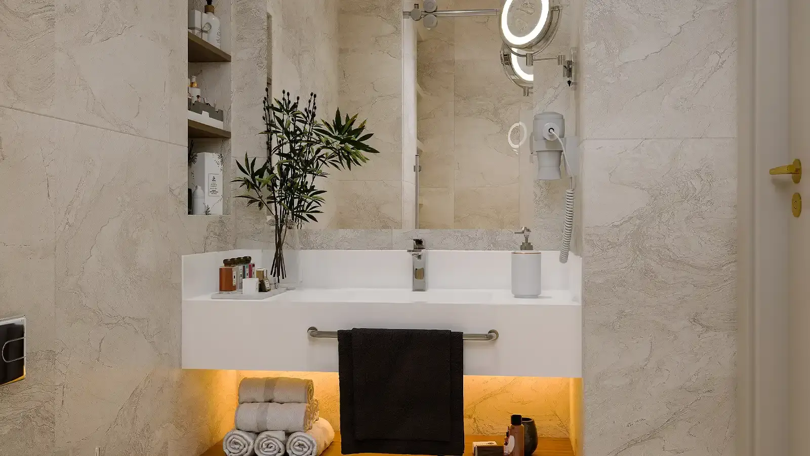 🛁 Luxuriöse Bäder mit eleganten Armaturen & Natursteindetails