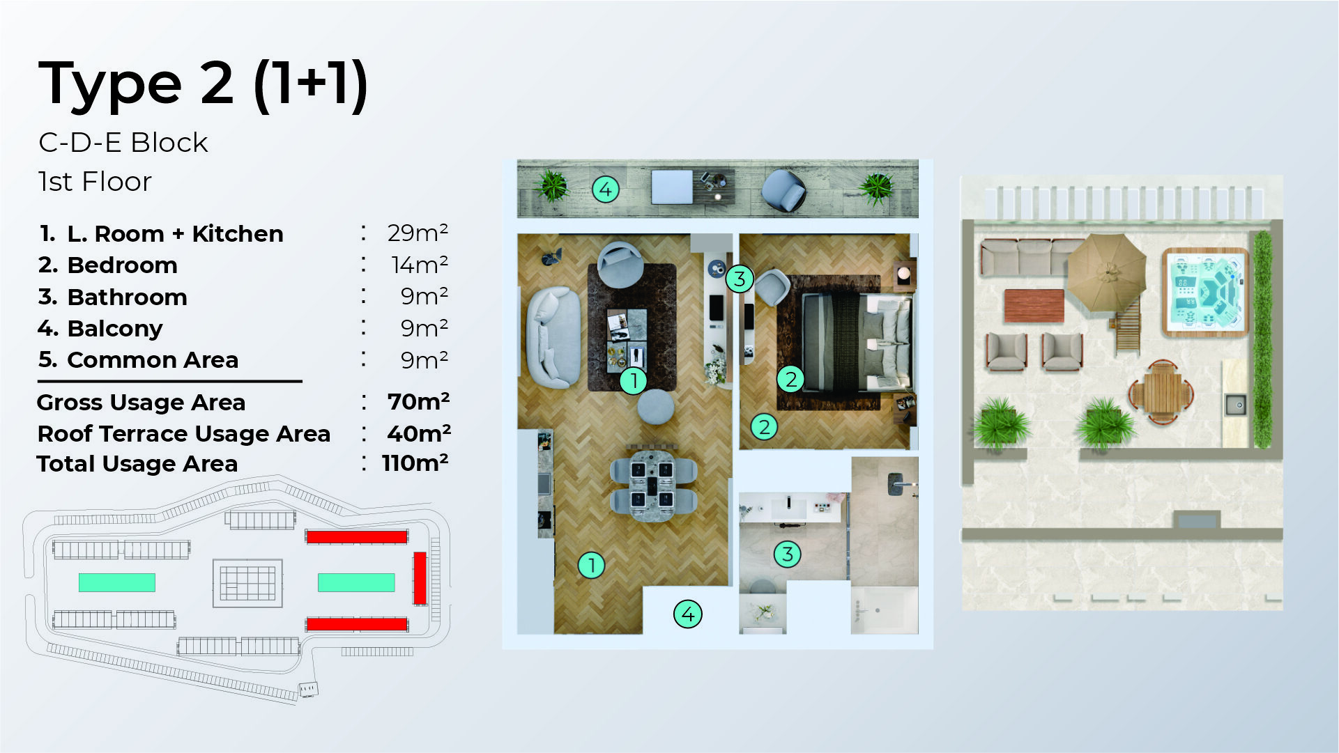 1-Schlafzimmer-Apartments (1+1) – Ideal für komfortables Wohnen am Meer
