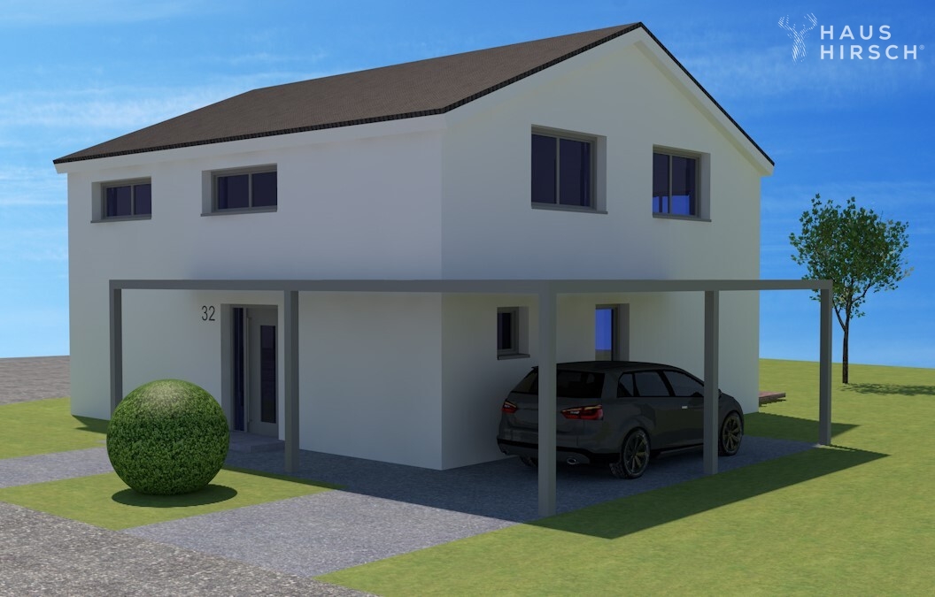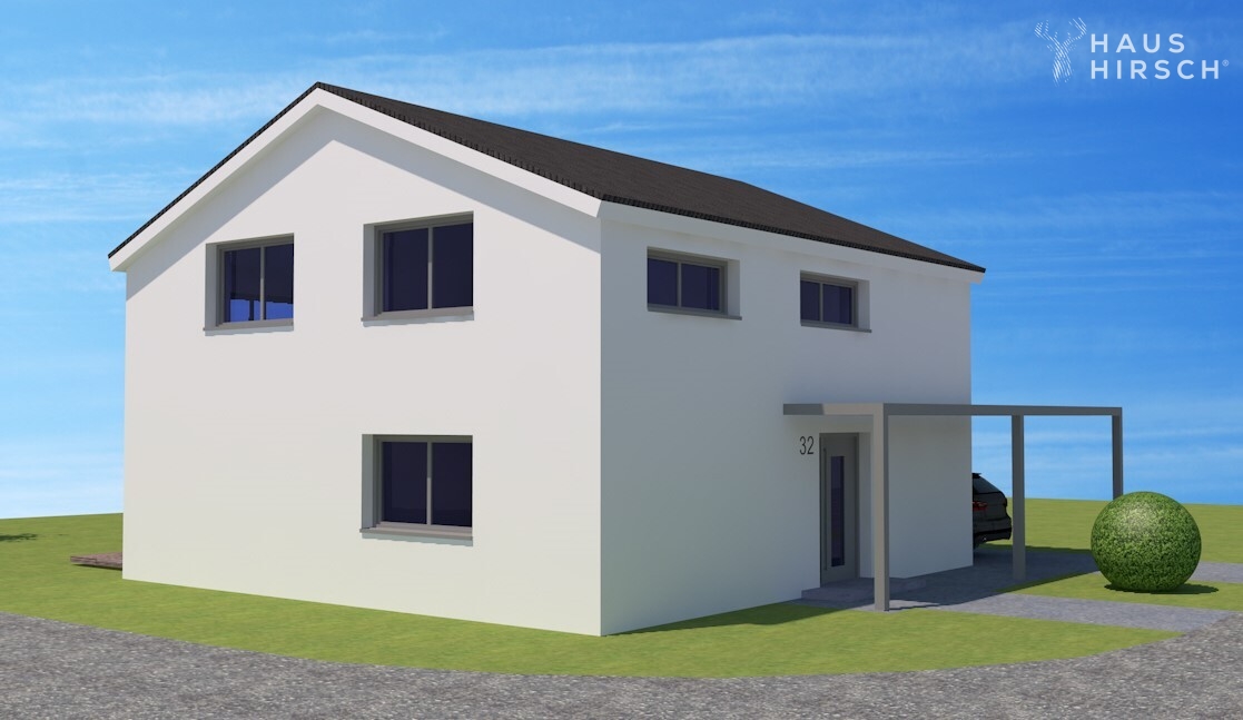 Auf einem sonnigen Eckgrundstück erwartet Sie dieses genehmigte und projektierte Ausbauhaus mit einer großzügigen Wohnfläche von 151 qm, verteilt auf 5 geräumige Zimmer und 2 Etagen. Das klassische Satteldach und die elegante Putzfassade verleihen dem Haus einen zeitlosen Charakter, der modernes Design mit traditioneller Architektur harmonisch vereint. Neben einem geräumigen Keller, der als Hobbyraum genutzt werden kann, gehören ein Carport und ein Stellplatz zum Angebot.