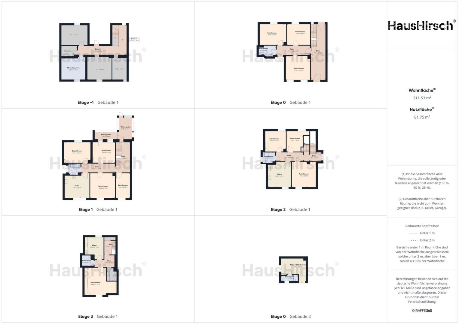 Eine Aufteilung in fünf separate Wohneinheiten (vier im Haupthaus, eine im Hinterhaus) ist möglich. Jede Wohneinheit verfügt über eine eigene Heizung.