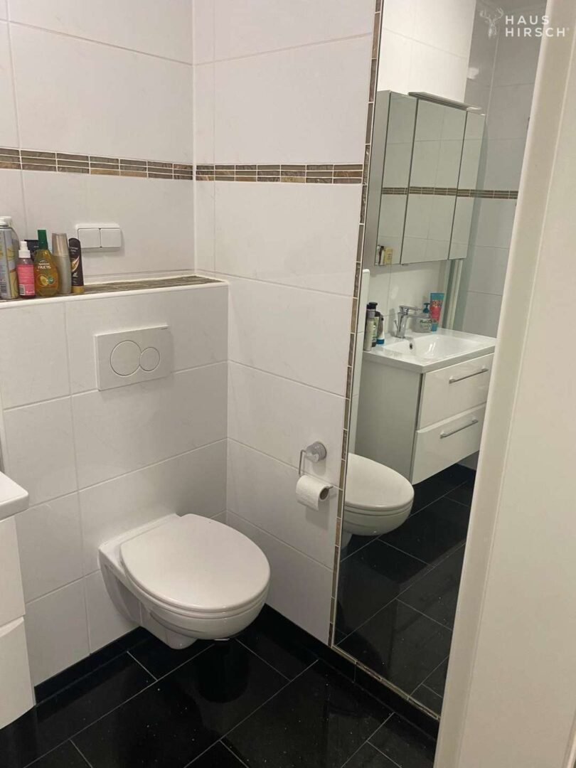 Modernes Badezimmer: Komplett neu gestaltet mit eleganten Fliesen, hochwertigen Armaturen und zeitloser Ausstattung