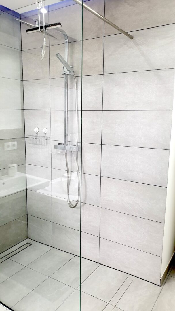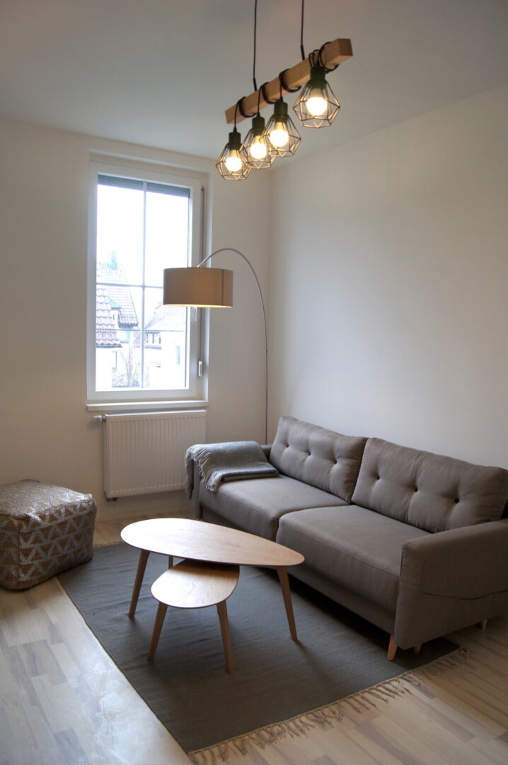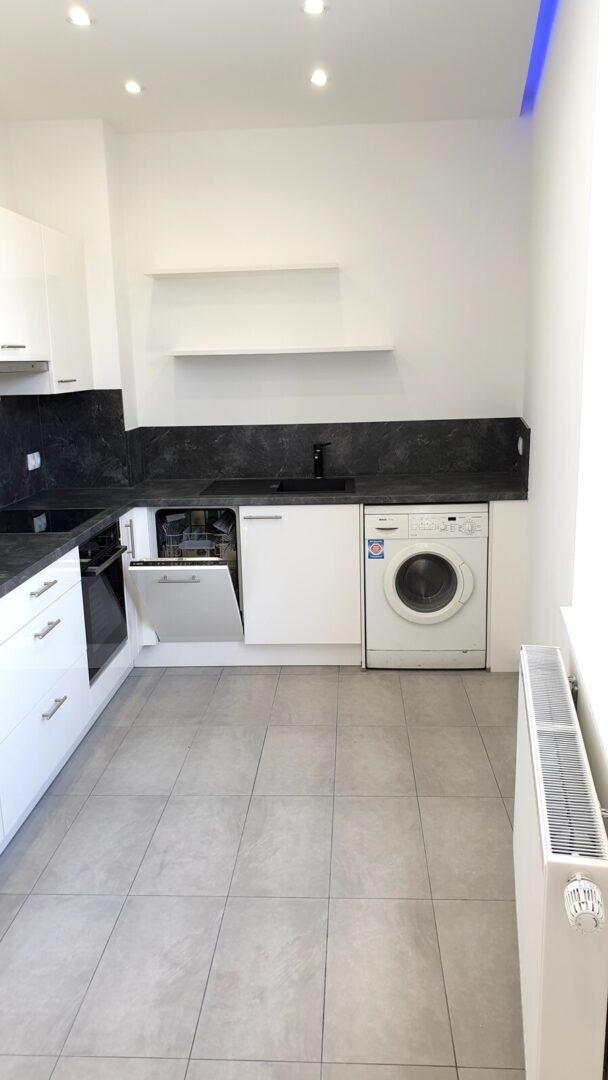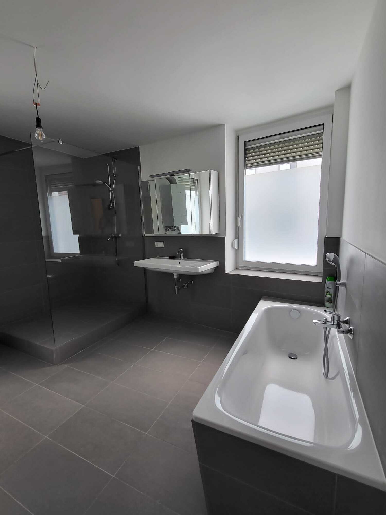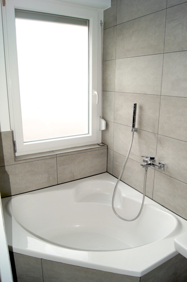 Die Wohnungen sind nach aktuellen Designstandards saniert. In den Wohnräumen wurde hochwertiges Parkett ausgelegt, Bäder und Küchen mit stilvollen großen grauen Fliesen ausgestattet. Die Bäder überzeugen durch klare Formen, moderne Armaturen und praktische Handtuchheizungen. Die Wohnungen haben zum Teil Wannenbäder jedoch immer begehbare Regenduschen.
