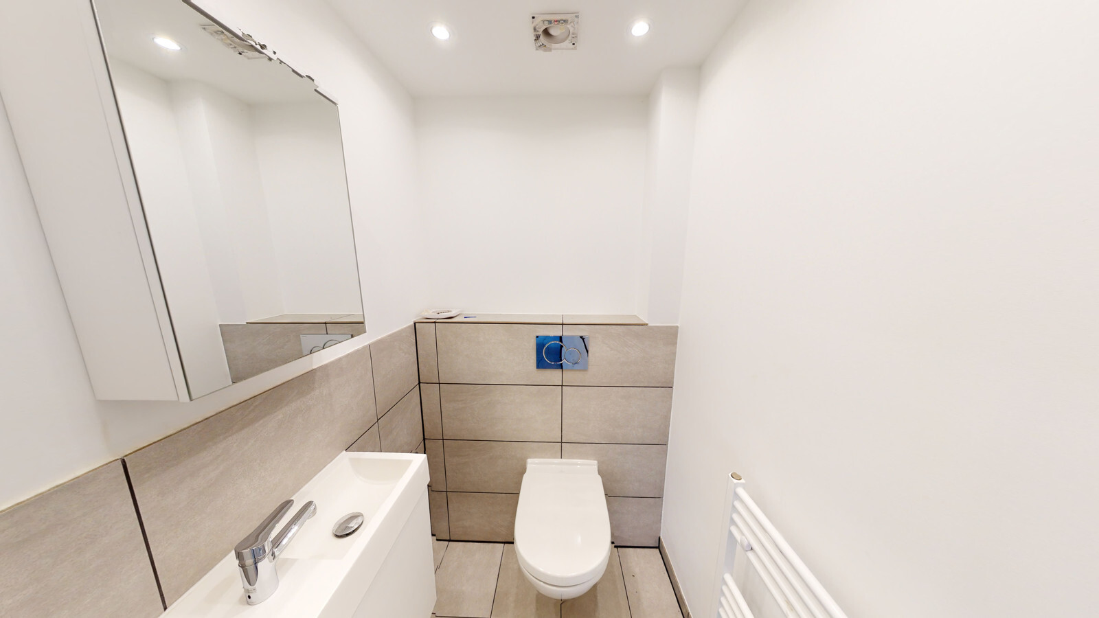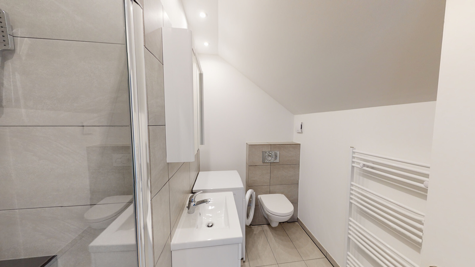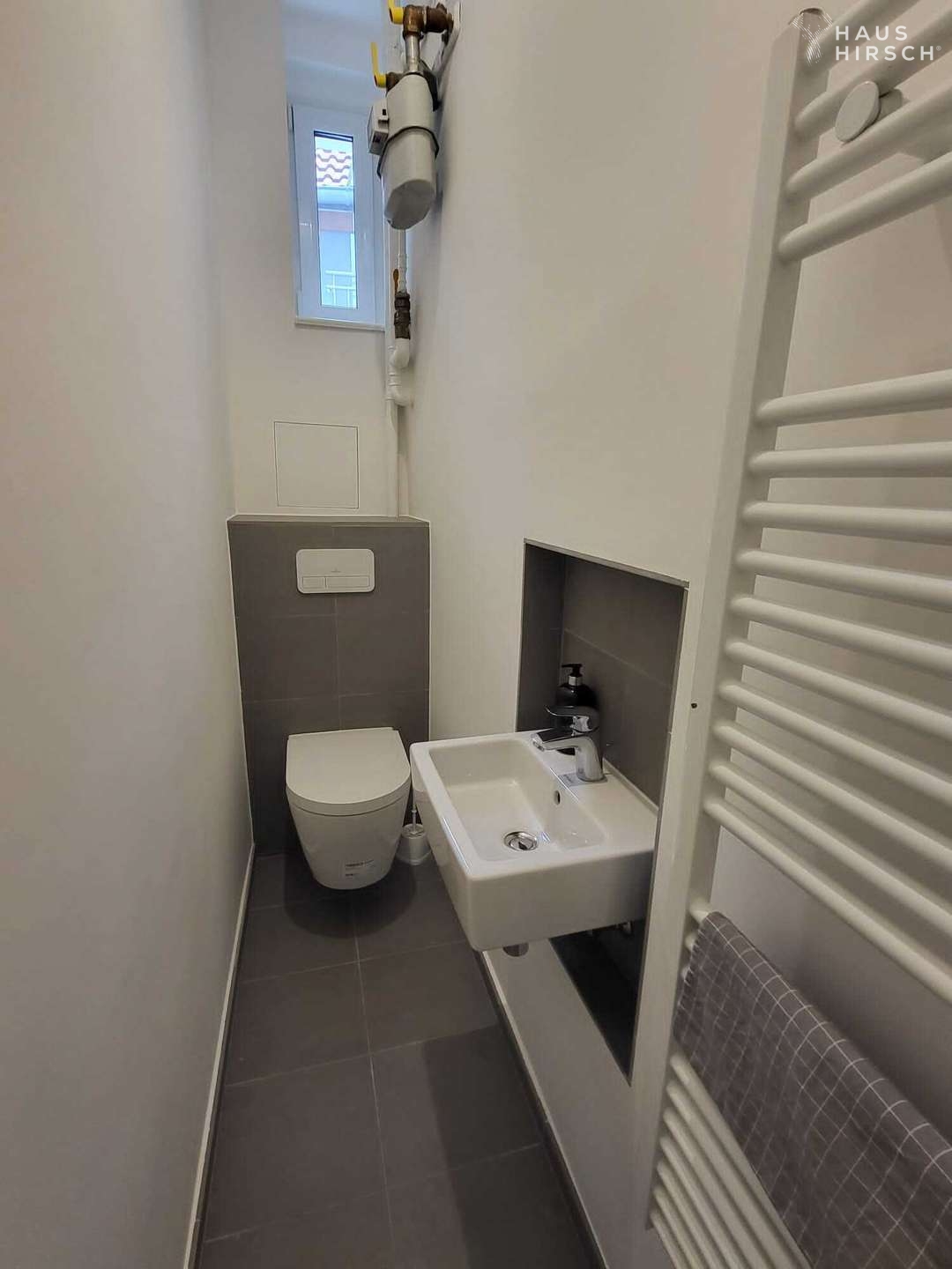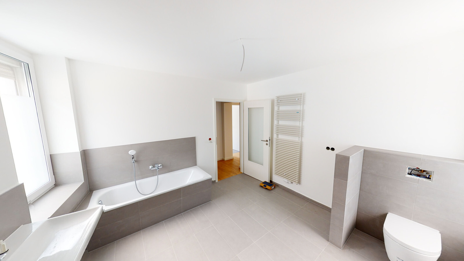 Die Wohnungen sind nach aktuellen Designstandards saniert. In den Wohnräumen wurde hochwertiges Parkett ausgelegt, Bäder und Küchen mit stilvollen großen grauen Fliesen ausgestattet. Die Bäder überzeugen durch klare Formen, moderne Armaturen und praktische Handtuchheizungen. Die Wohnungen haben zum Teil Wannenbäder jedoch immer begehbare Regenduschen.