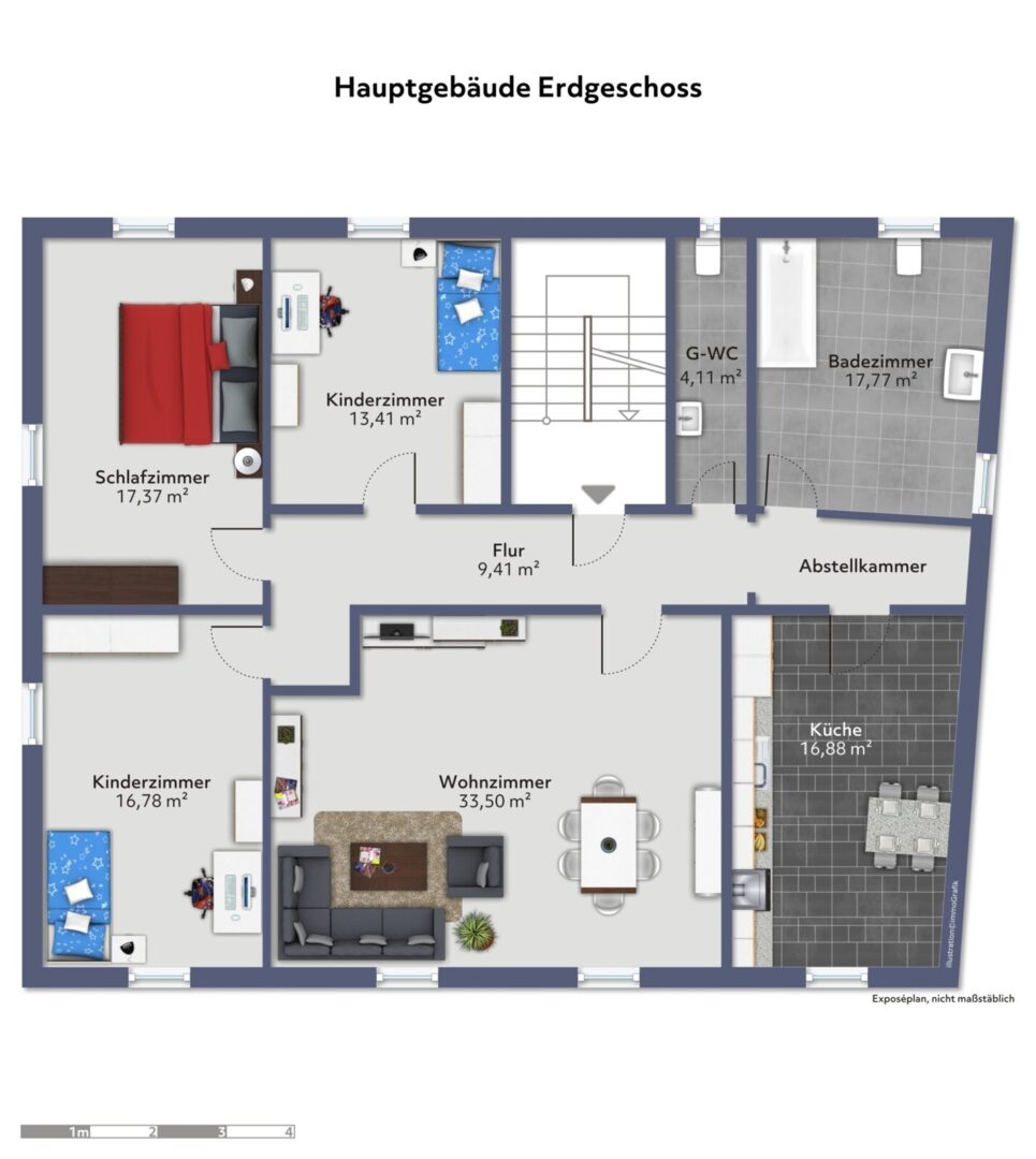 - Eine große Wohnung im Erdgeschoss mit insgesamt 129,23 m2