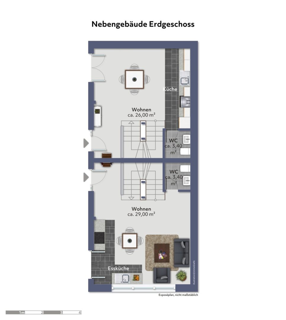 Das Nebengebäude beherbergt die weiteren 2 Wohneinheiten: