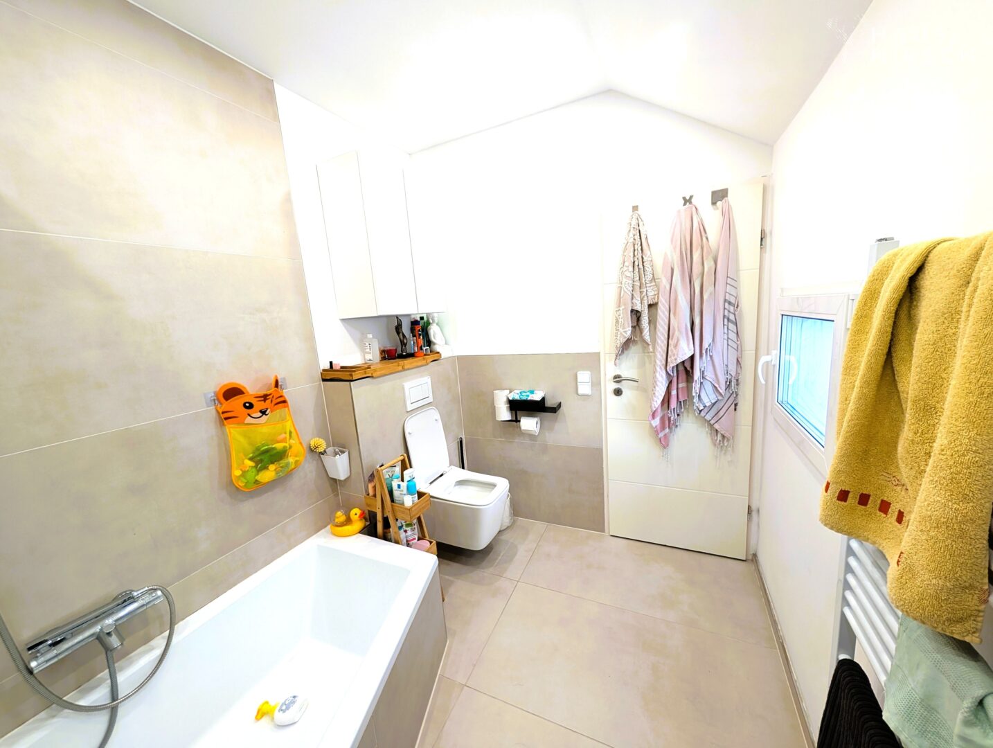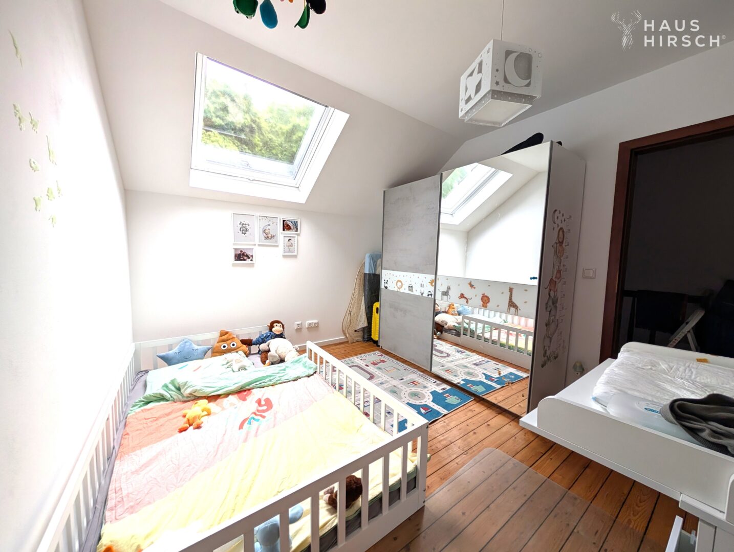 Das Obergeschoss besteht aus einem großzügigen Schlafzimmer, sowie einem kleineren Zimmer, welches als Arbeits- oder Kinderzimmer genutzt werden kann.