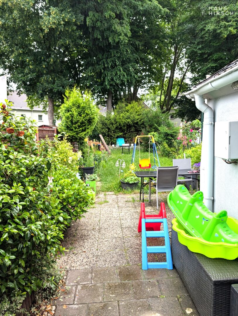 Eines der Highlights ist der pflegeleichte Garten mit Blick auf schöne hohe Bäume, der vor allem im Sommer zum Entspannen einlädt.