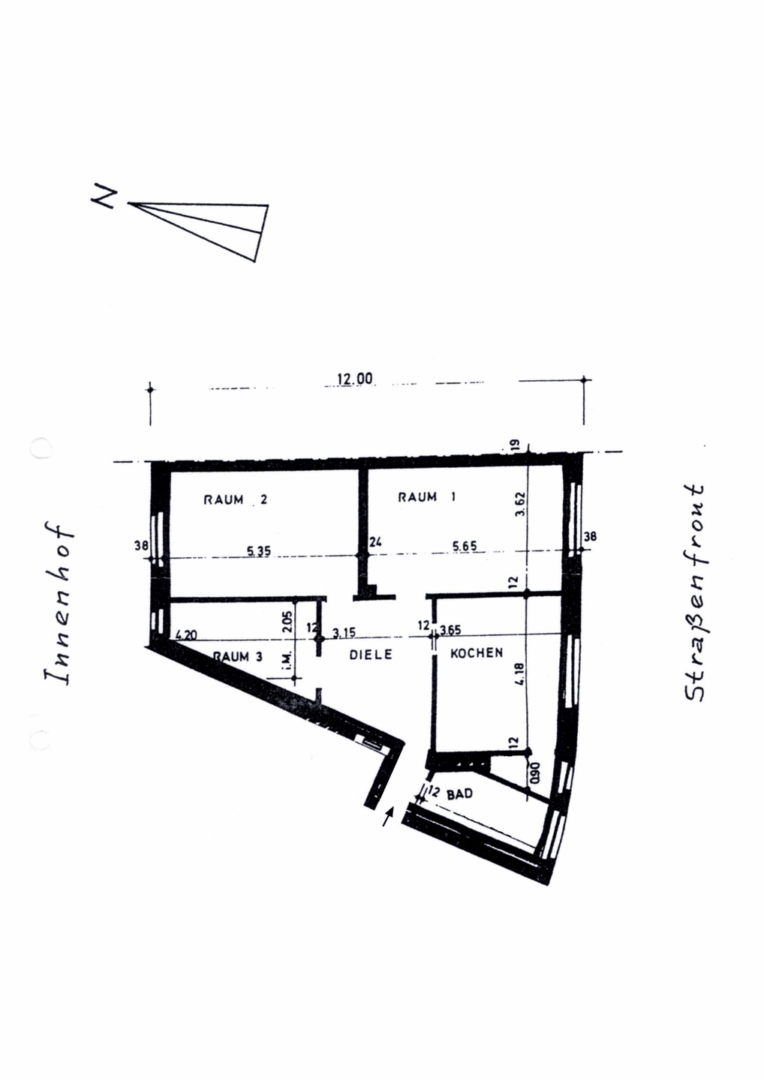 - 3 helle Räume, großzügiger Flur, separate Küche mit Abstellraum