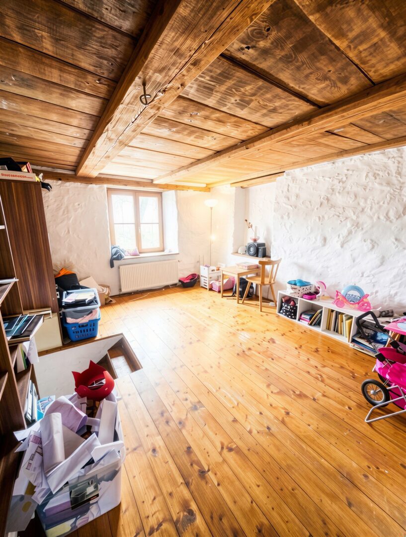 Im Obergeschoss liegen das Galerieschlafzimmer und zwei Kinderzimmer; ein weiteres Bad kann mit wenig Aufwand ergänzt werden, da Leitungen bereits vorbereitet sind. Die große Dachfläche bietet zusätzliche Ausbaureserven. Ein Hauswirtschaftsraum, Teilkeller sowie ein Schuppen mit Strom- und Wasseranschluss runden das Angebot ab.