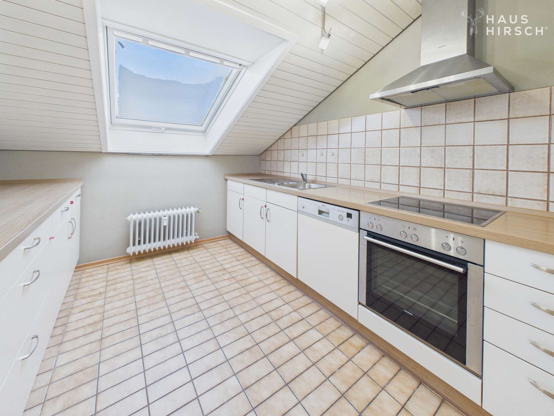 Kulinarische Geborgenheit In der Küche verbindet sich Funktionalität mit Atmosphäre. Die abgeschlossene Küche mit ihrer gepflegten Ausstattung wird zum gemütlichen Rückzugsort für Ihre Kochkünste. Die sanften Dachschrägen und das durchdachte Lichtkonzept verleihen dem Raum einen unverwechselbaren, harmonischen Charakter – ein Ort, an dem man gerne verweilt.