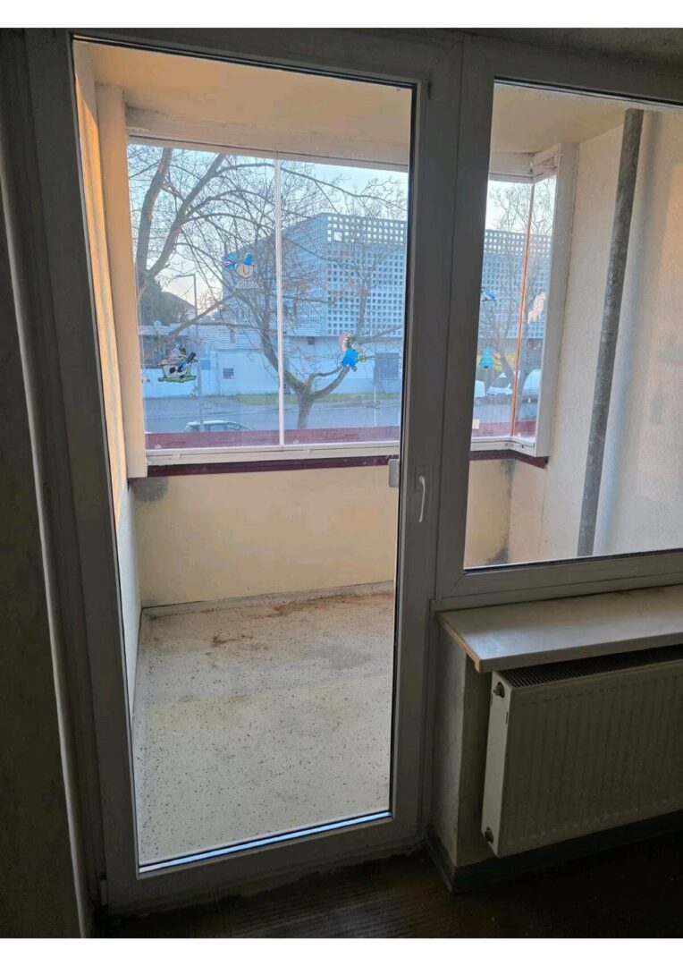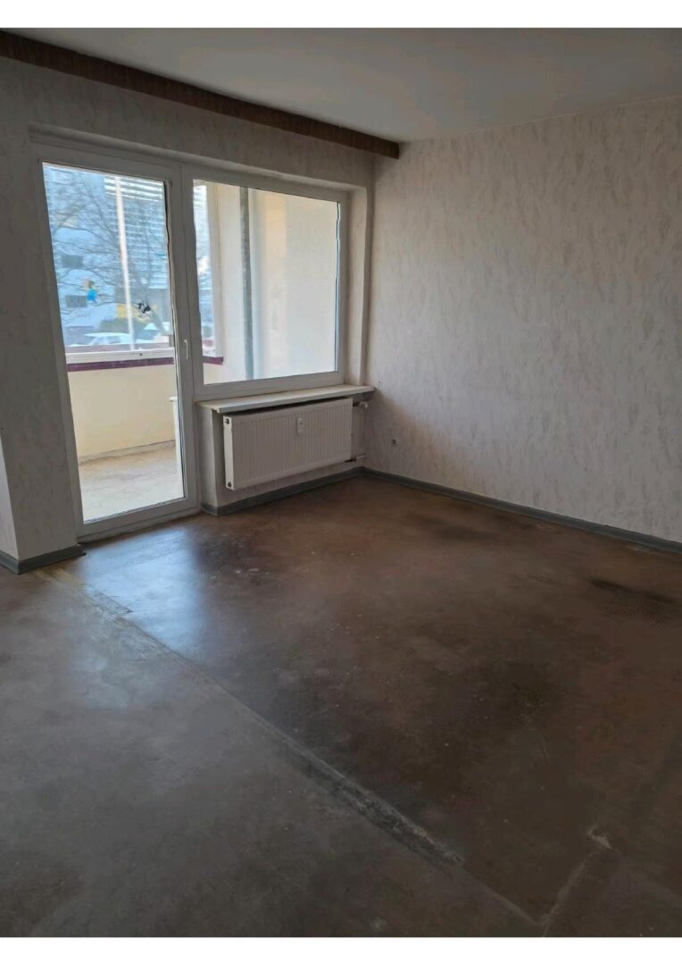 Wohnbereich: Das helle Herzstück der Wohnung bietet direkten Zugang zum sonnigen Balkon, der zum Entspannen im Freien einlädt.
