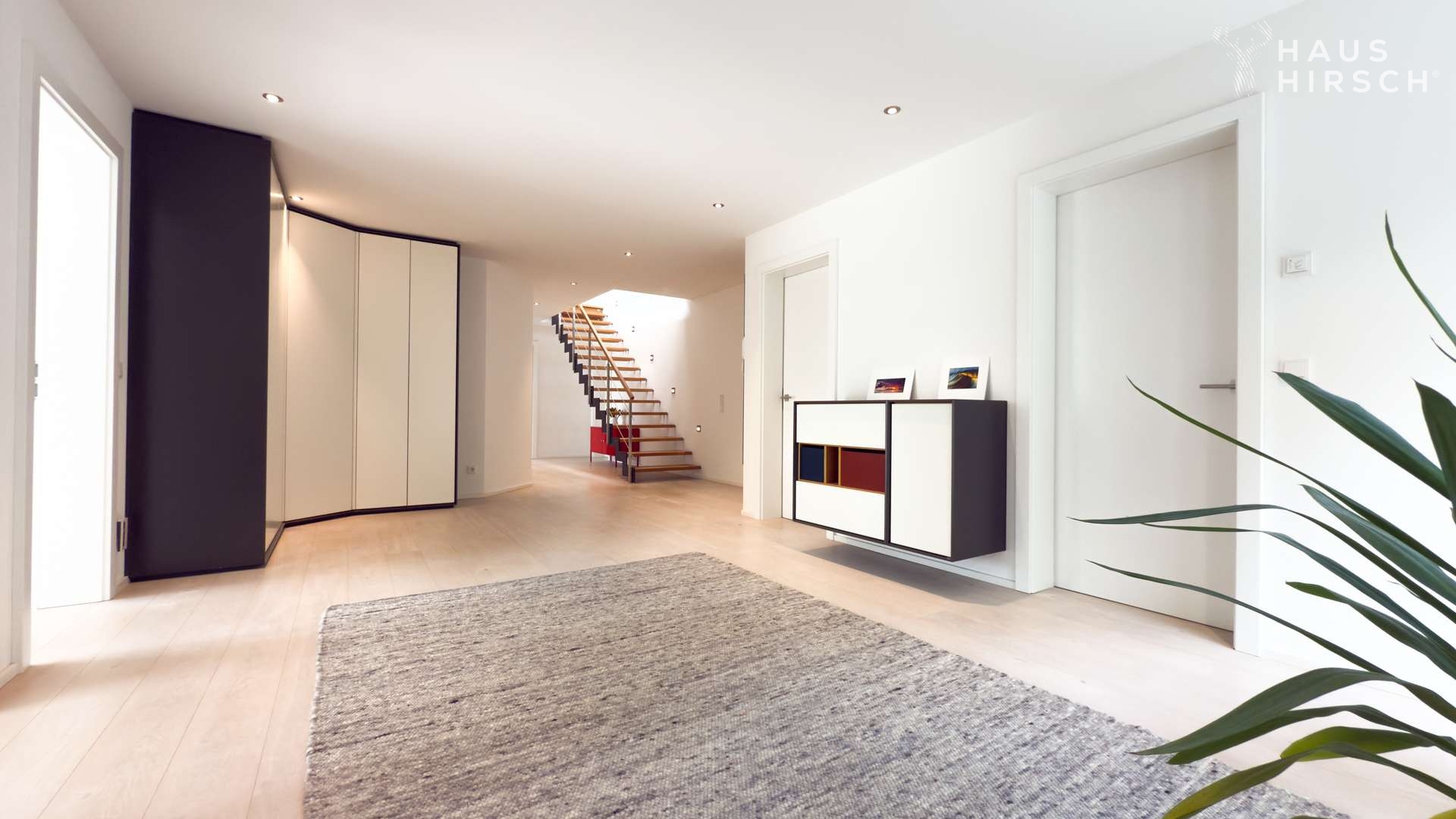 Eine elegante Treppe geleitet Sie hinunter in den weitläufigen Garten. Hier, auf rund 700 m² unbebauter Fläche, lässt sich Ihre Vision vom perfekten Outdoor-Leben verwirklichen – ob exklusiver Pool, edle Außensauna oder einfach ein Rückzugsort im Grünen.