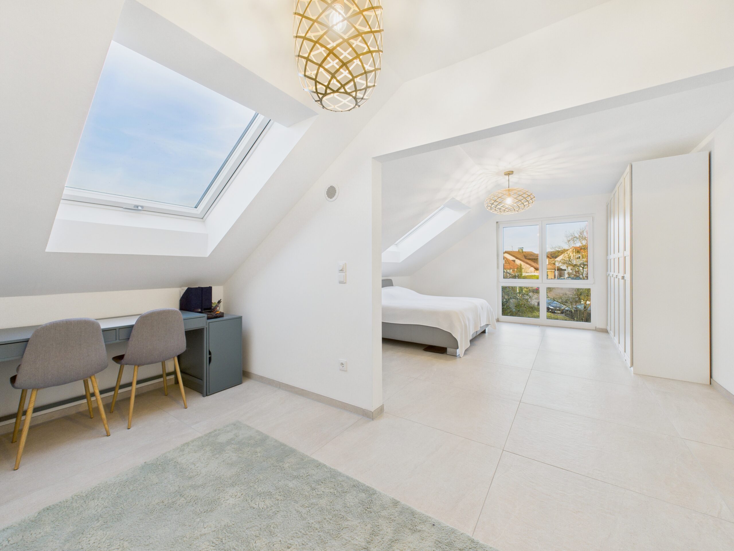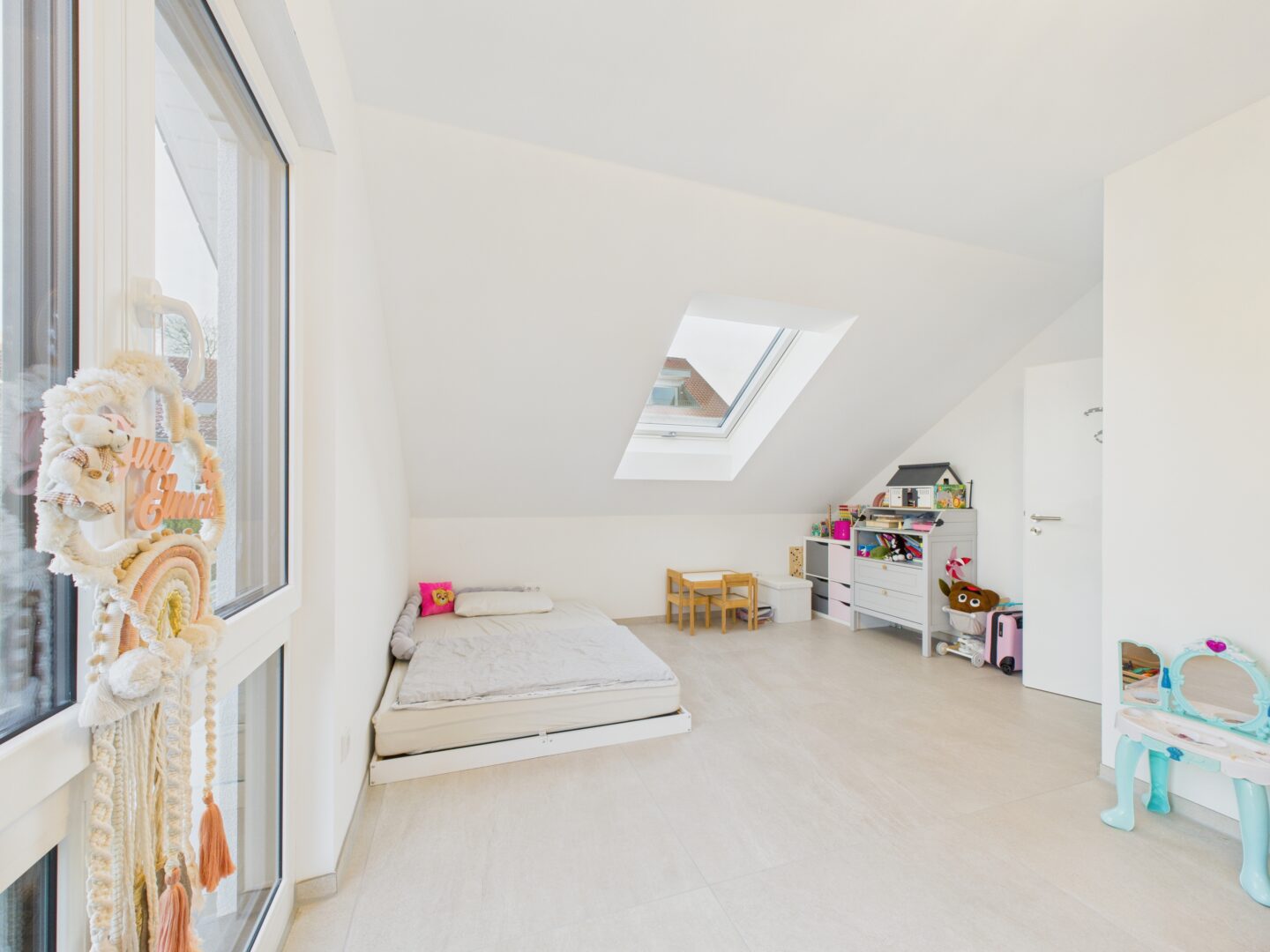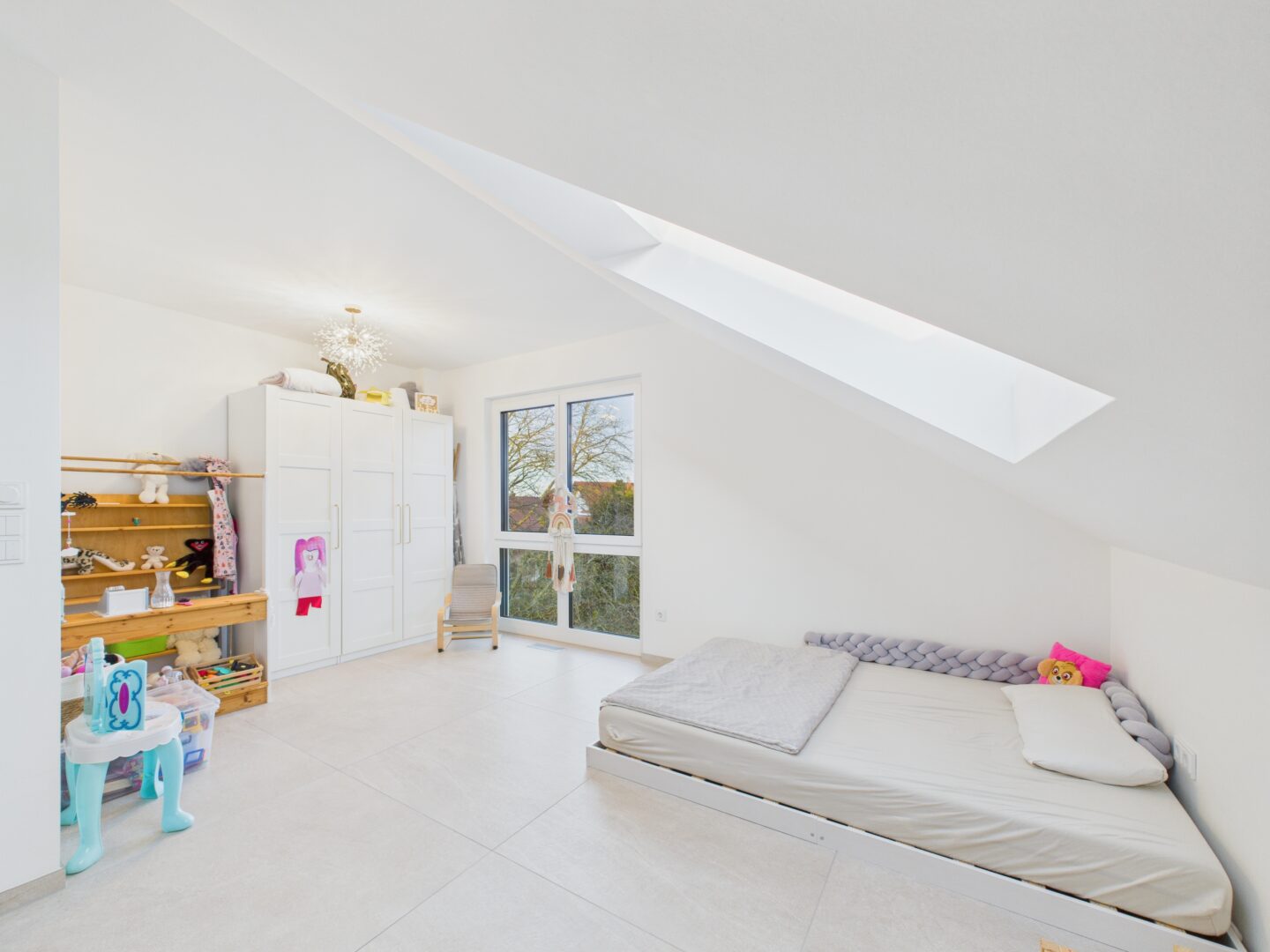 Im Obergeschoss beginnt der Tag entspannt und zurückgezogen. Unter den gemütlichen Dachschrägen befinden sich das Elternschlafzimmer mit Ankleide sowie ein liebevoll geschnittenes Kinderzimmer.