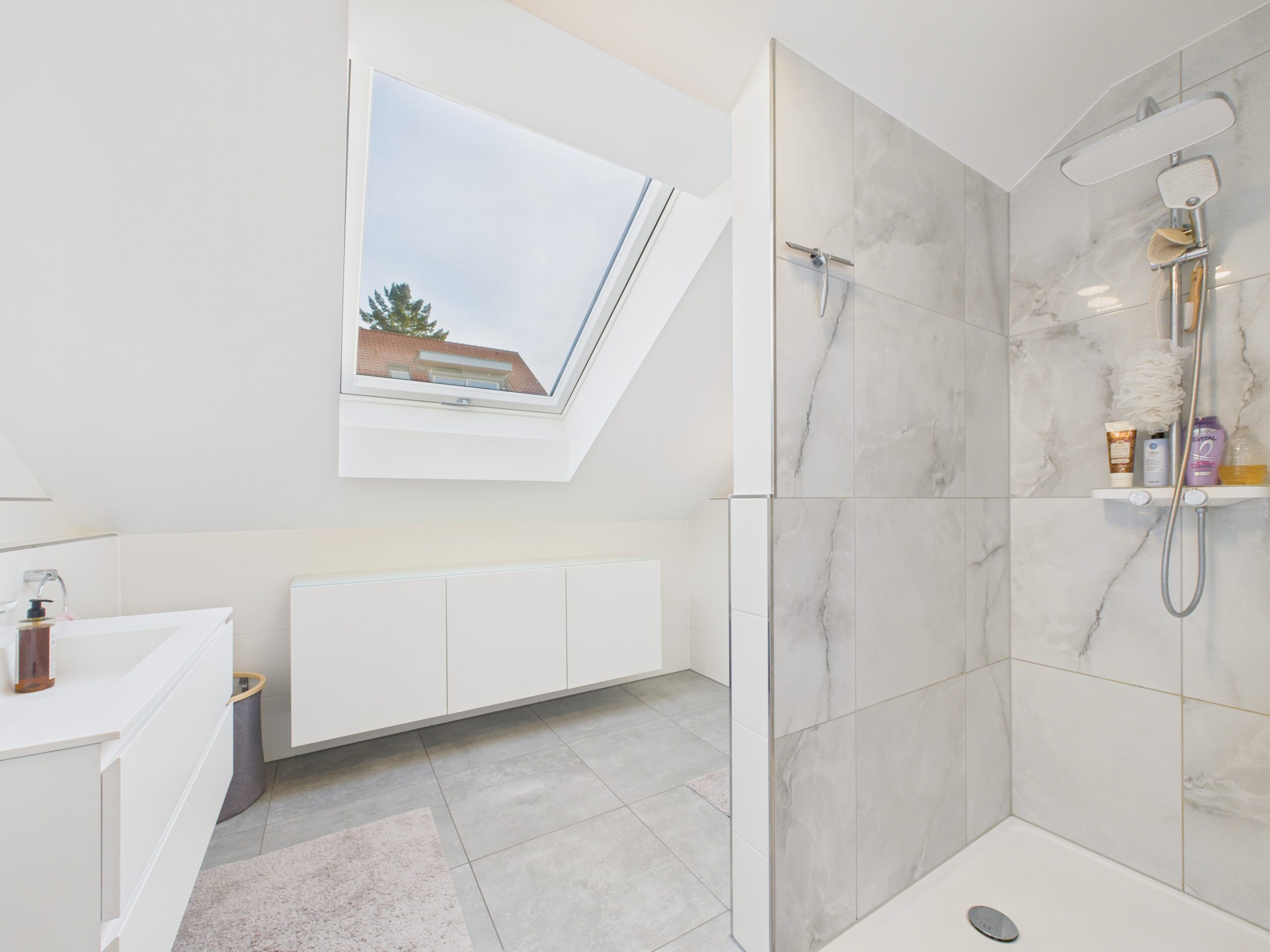 Tageslichtbadezimmer mit begehbarer Dusche