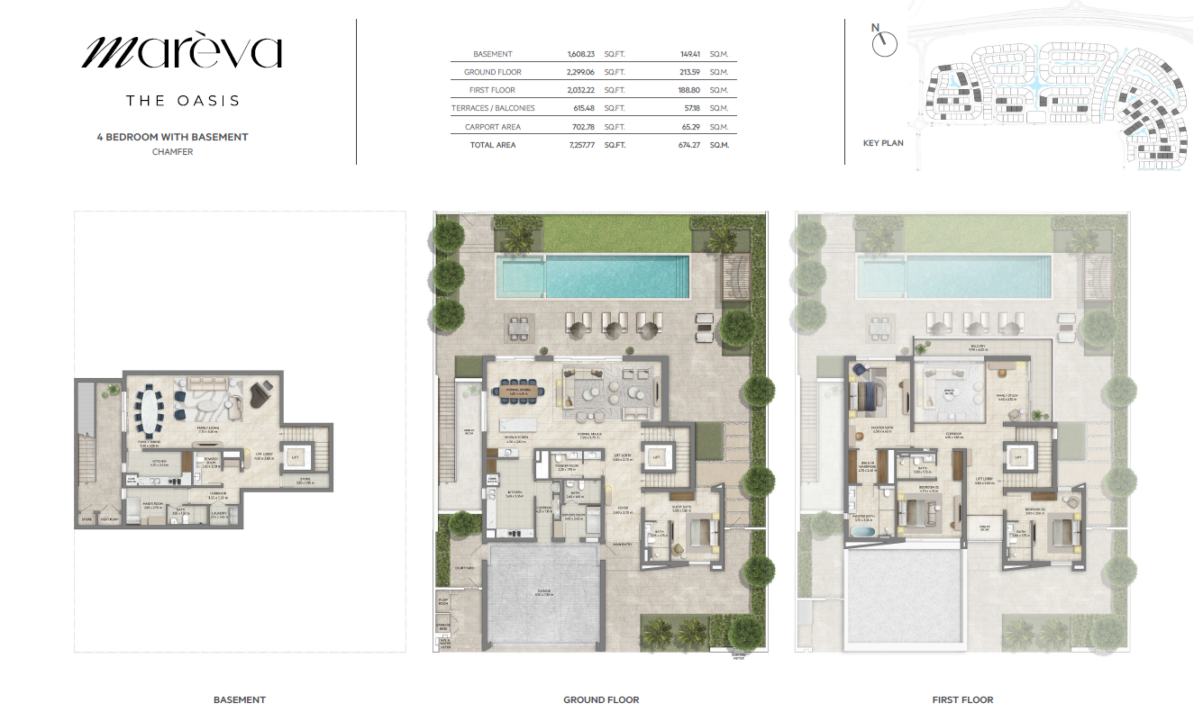 Die Ausstattung der Villen und Herrenhäuser in The Oasis ist ebenso beeindruckend. Private Gärten, Innenhöfe und Pools bieten einen ruhigen Rückzugsort, während der Blick aufs Wasser und die moderne Architektur den Reiz noch erhöhen. Hochwertige Ausstattungen und großzügige Wohnflächen sorgen dafür, dass Komfort und Stil Hand in Hand gehen.