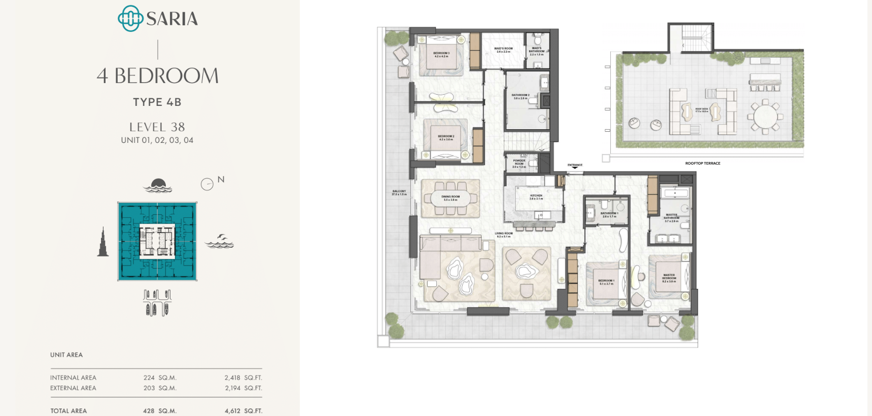 Willkommen in diesem luxuriösen Apartment mit vier Schlafzimmern, das sich perfekt für Familien und Investoren eignet. Der großzügige Wohnbereich und die geräumige Küche versprechen ein komfortables und einladendes Ambiente. Hier finden Sie genügend Platz zum Entspannen und geselligem Beisammensein. Die modern gestaltete Küche bietet genügend Platz zum Kochen und Zubereiten von köstlichen Mahlzeiten. Dieses Apartment verspricht hohe Qualität und Komfort für anspruchsvolle Bewohner.