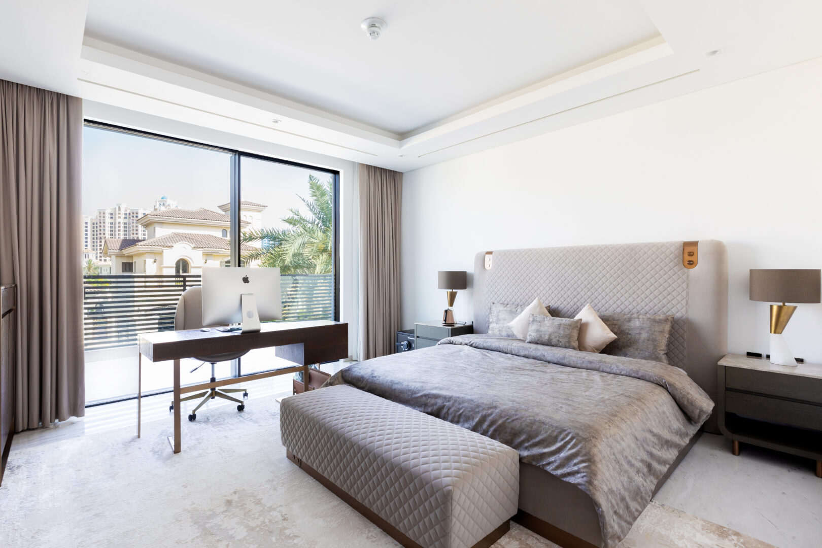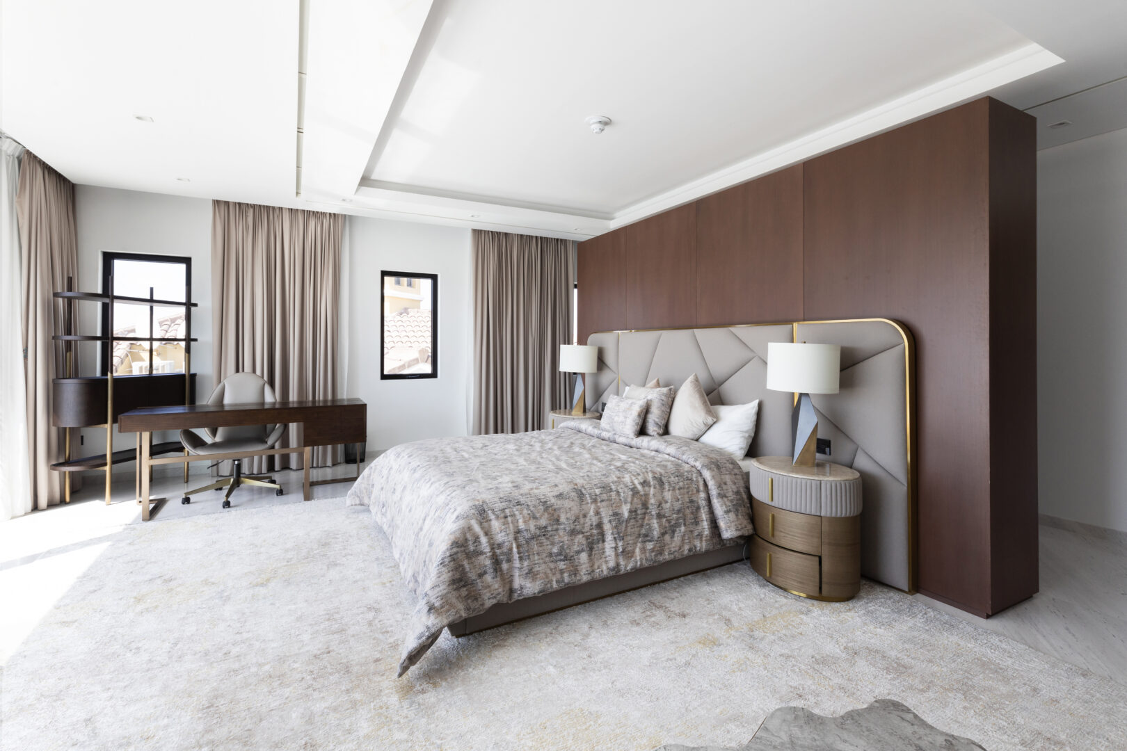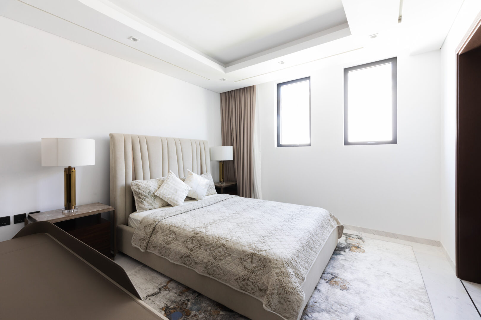 Mit insgesamt 7 geräumigen Schlafzimmern stellt diese Villa den perfekten Ort dar, um Ihren Traum vom eleganten Wohnen in einer exklusiven Umgebung wahr werden zu lassen. Genießen Sie die Ruhe und Privatsphäre, die Ihnen dieses Anwesen bietet, während Sie den atemberaubenden Blick auf das Meer und die Skyline von Dubai bewundern.