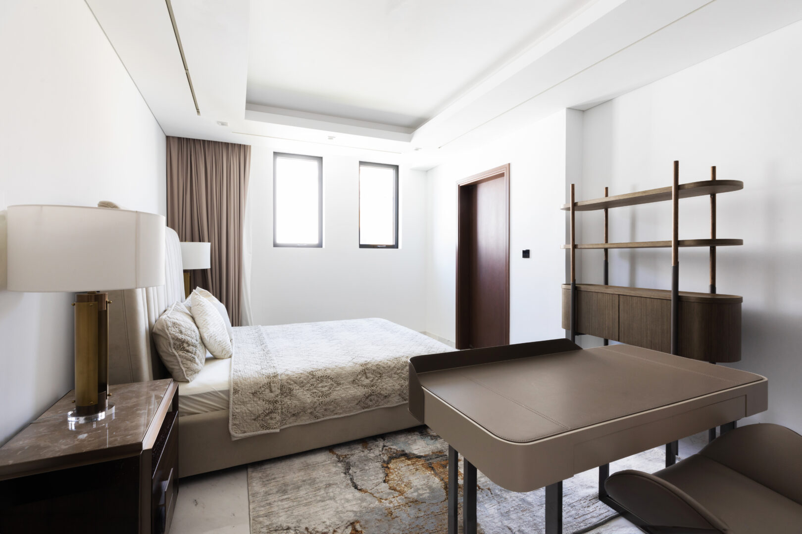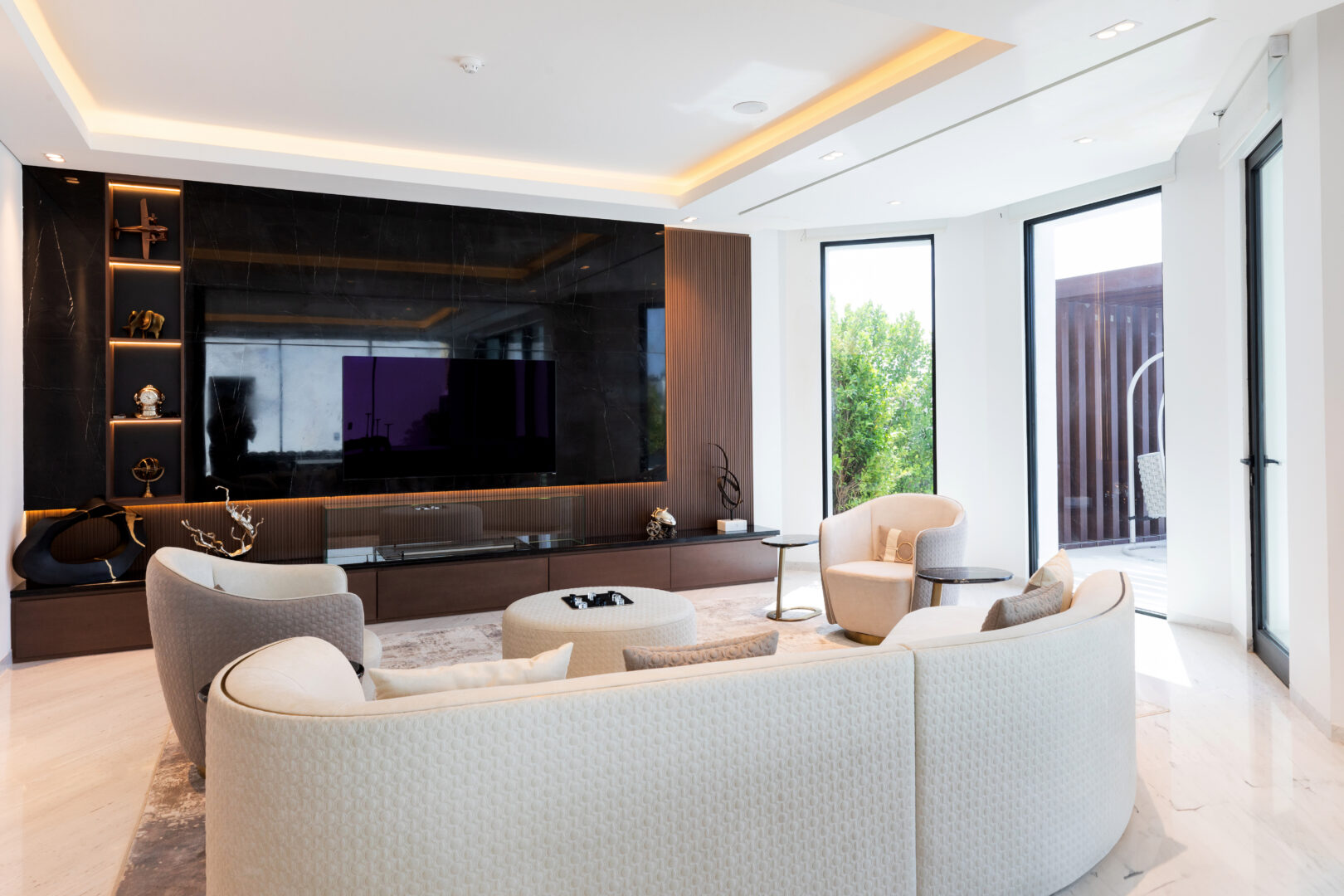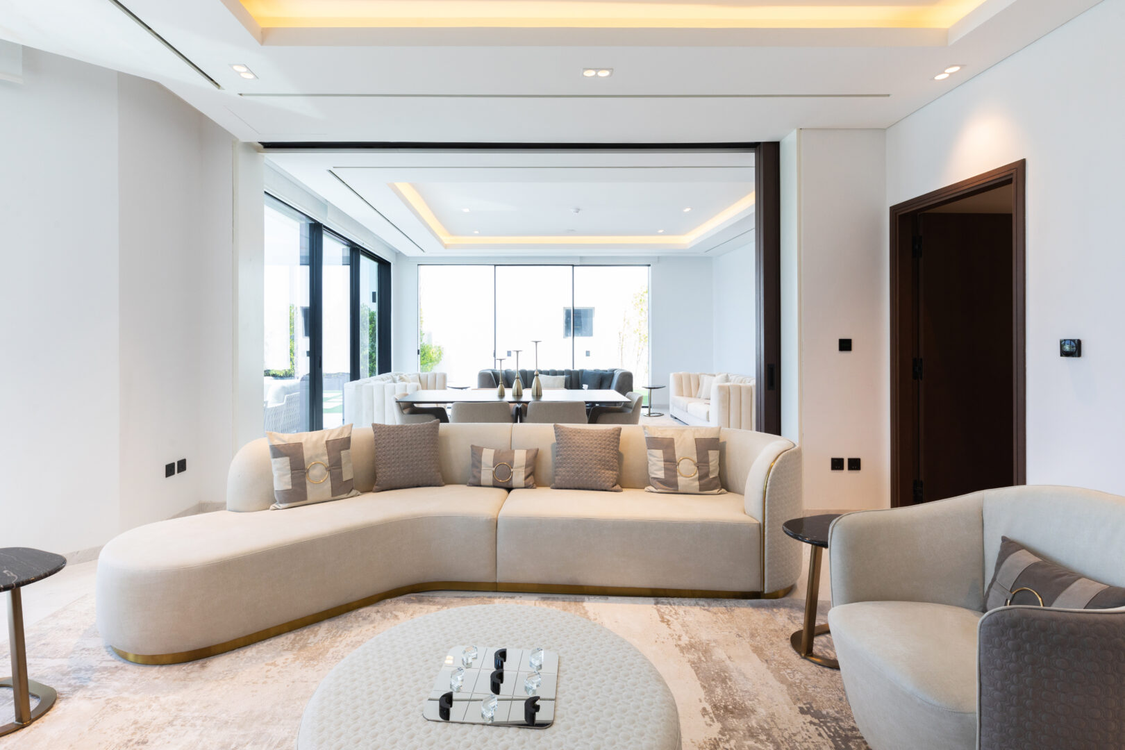 Mit insgesamt 7 geräumigen Schlafzimmern stellt diese Villa den perfekten Ort dar, um Ihren Traum vom eleganten Wohnen in einer exklusiven Umgebung wahr werden zu lassen. Genießen Sie die Ruhe und Privatsphäre, die Ihnen dieses Anwesen bietet, während Sie den atemberaubenden Blick auf das Meer und die Skyline von Dubai bewundern.