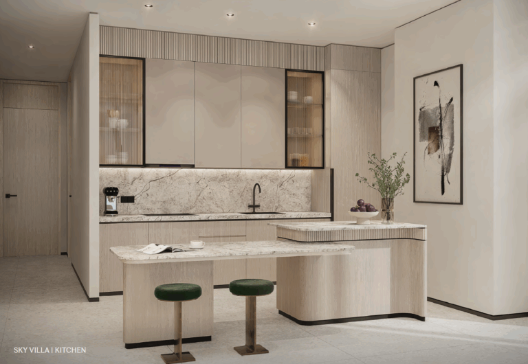 Ein Entertainment-Raum steht für unterhaltsame Abende zur Verfügung, während ein voll ausgestattetes Fitnessstudio Ihre sportlichen Aktivitäten unterstützt. Draußen finden Sie Co-Working-Bereiche, in denen Sie auch im Freien produktiv arbeiten können. Für die jüngsten Bewohner gibt es einen Indoor-Kinderclub sowie einen Bereich zum Lernen und Spielen im Freien. Ein vielseitiger Mehrzweckraum rundet das umfangreiche Angebot ab. Willkommen in Ihrem neuen Zuhause in der Luxus-Sky-Villa!